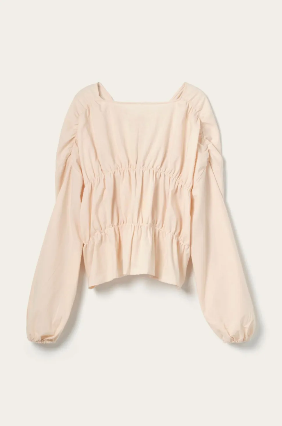 • Lange, brede ærmer med elastik ved manchetterne