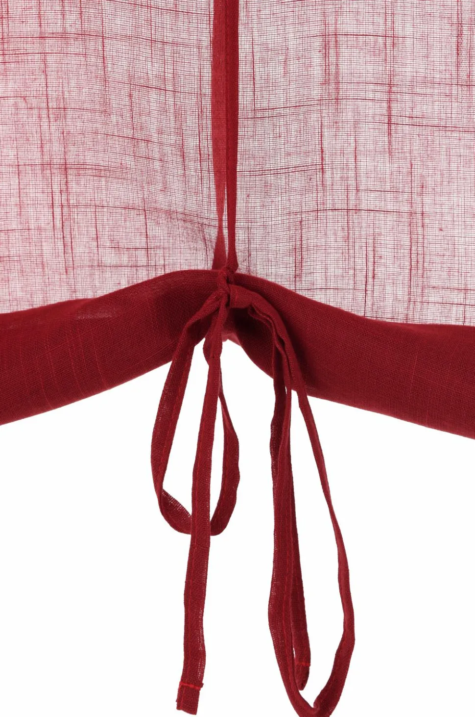 Roll up-gardin af luftig polyester med struktur i hørlook. Gardinet rulles op og fastgøres med bindebånd. Med stropper som trædes på gardinstang. Anvend gerne en rundstok forneden (medfølger ikke).
