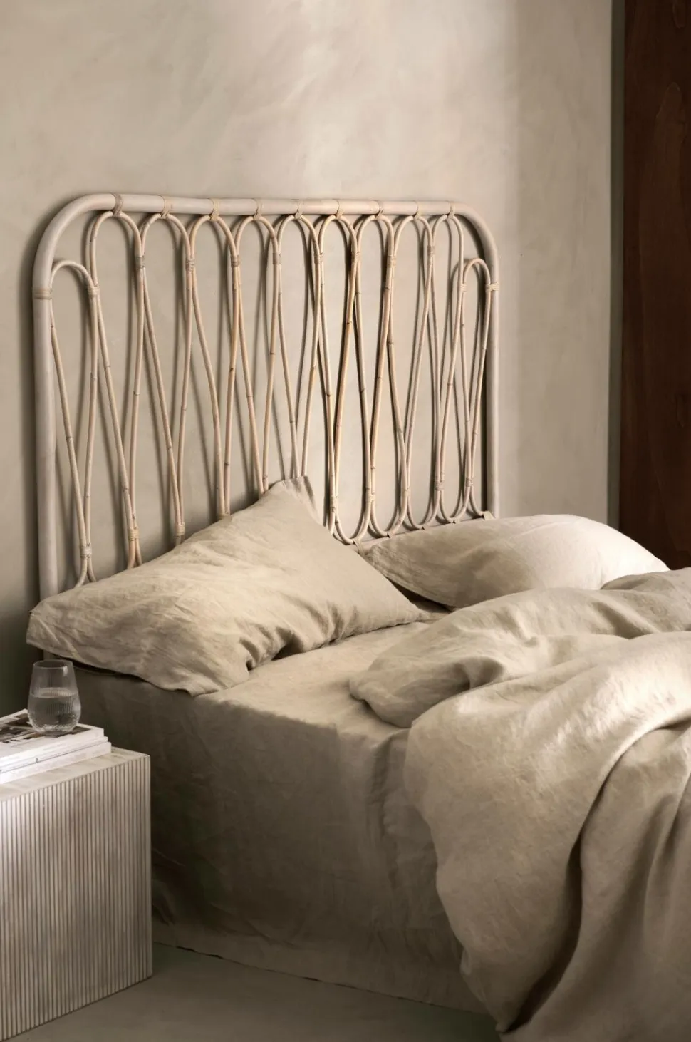 Hovedgavl i rotting med et dekorativt mønster. Gavlen stilles på gulvet.