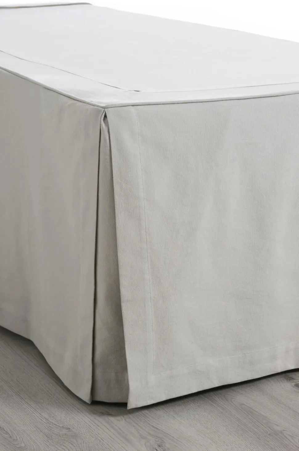 Sengekappe af bomuld med kappe i lidt kraftigere kvalitet. Dekorativ paspoleret kant. 5 størrelser: 90×200, 120×200, 140×200, 160×200 samt 180×200 cm. Højde 52 cm.