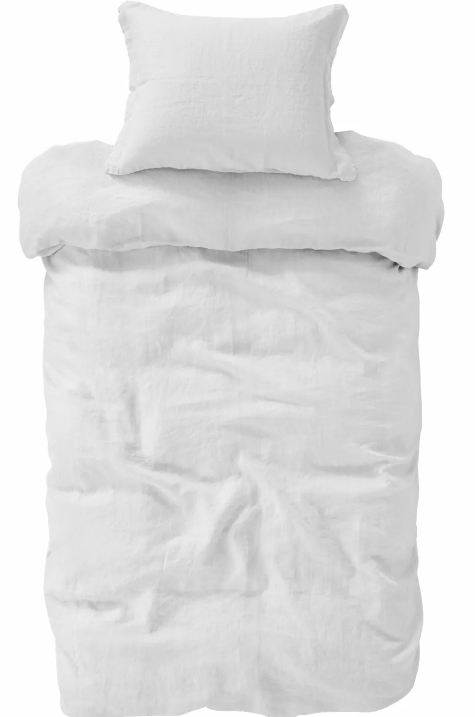 Sengesæt i herlig, vasket kvalitet af fransk hør. Trykknapper i kanten forneden på dynebetrækket. Uden huller i siden til brug ved opredning. Pudebetræk med 5 cm vinge på kortsiderne. Vægt 165 g/m2.