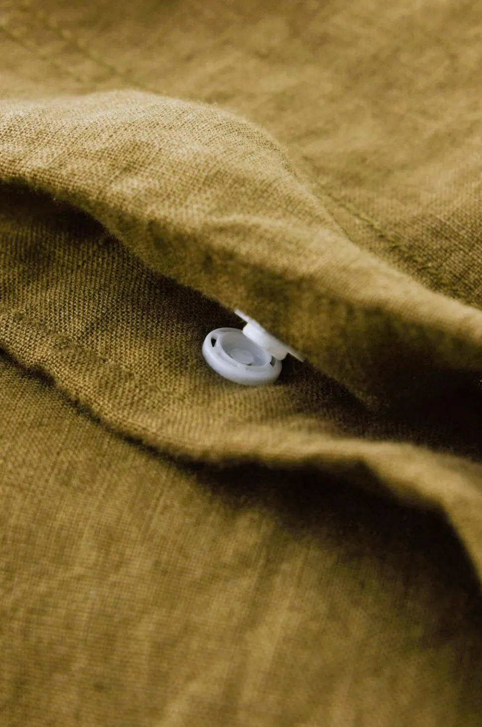 Sengesæt i herlig, vasket kvalitet af fransk hør. Trykknapper i kanten forneden på dynebetrækket. Uden huller i siden til brug ved opredning. Pudebetræk med 5 cm vinge på kortsiderne. Vægt 165 g/m2.