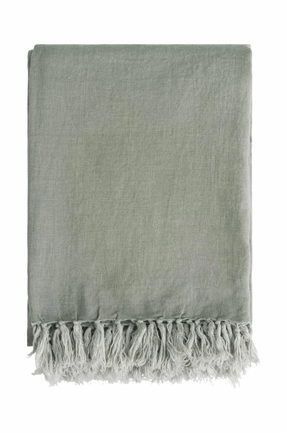 Sengetæppe af vasket, fransk hør i kraftig kvalitet med frynser på to sider. Kan også anvendes som plaid.