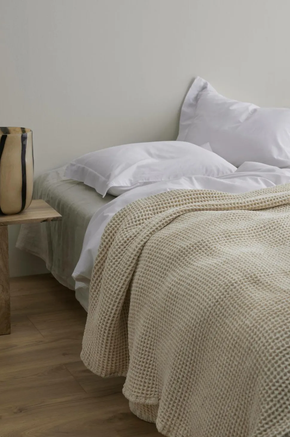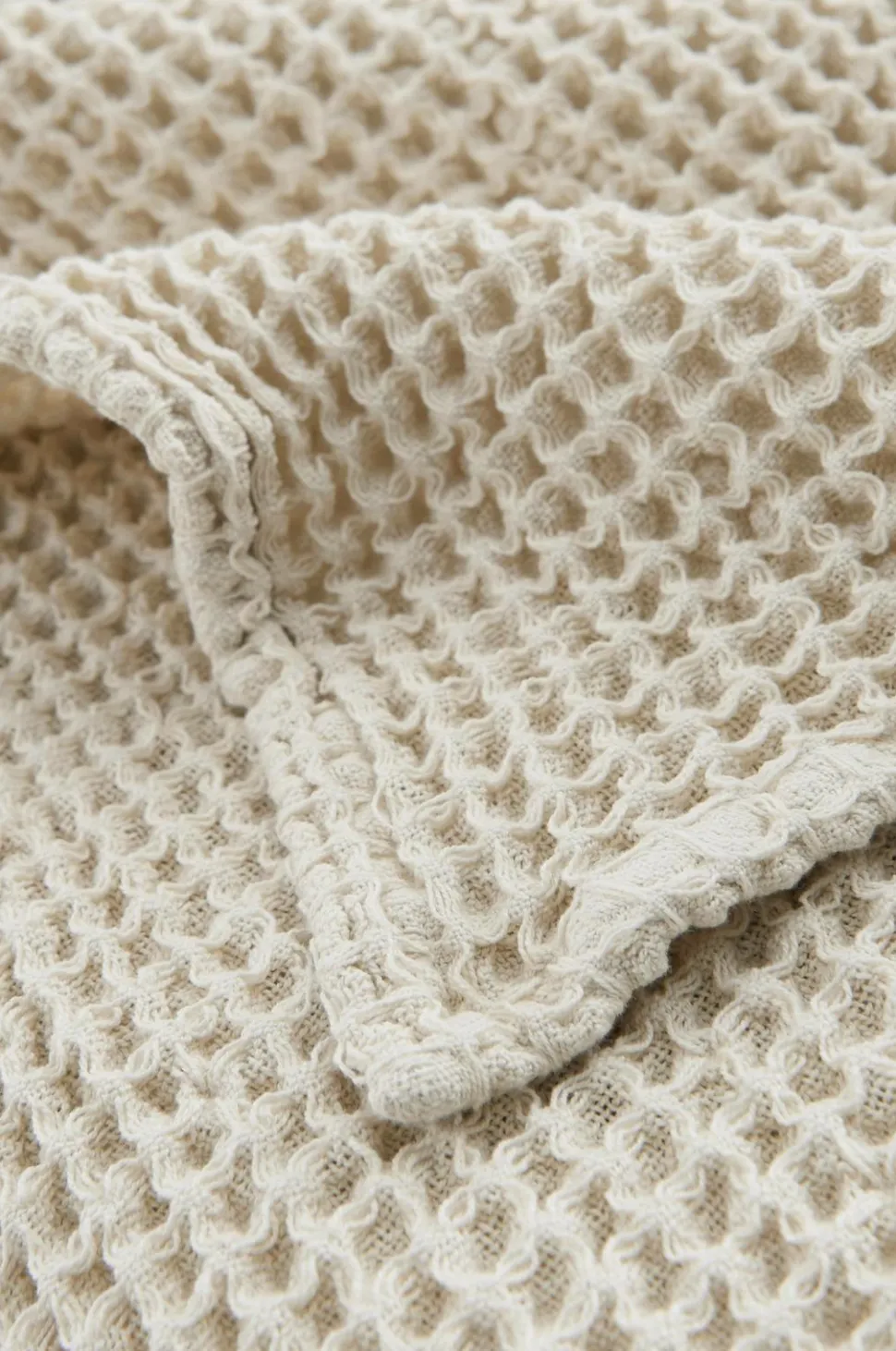 Sengetæppe i vasket bomuld med kraftigt vaffelmønster.