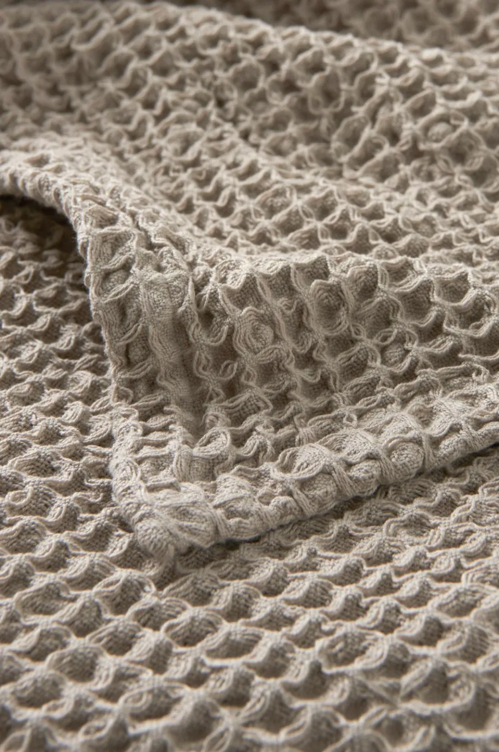 Sengetæppe i vasket bomuld med kraftigt vaffelmønster.