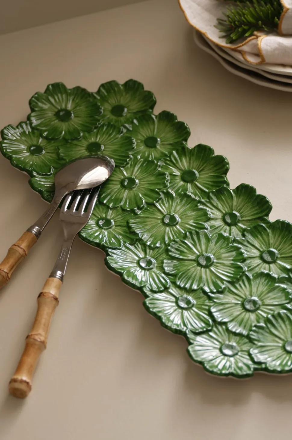 • Serveringsfad i glaseret keramik med håndmalet afslutning
