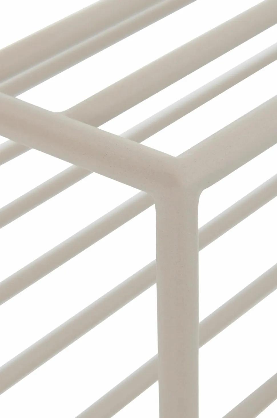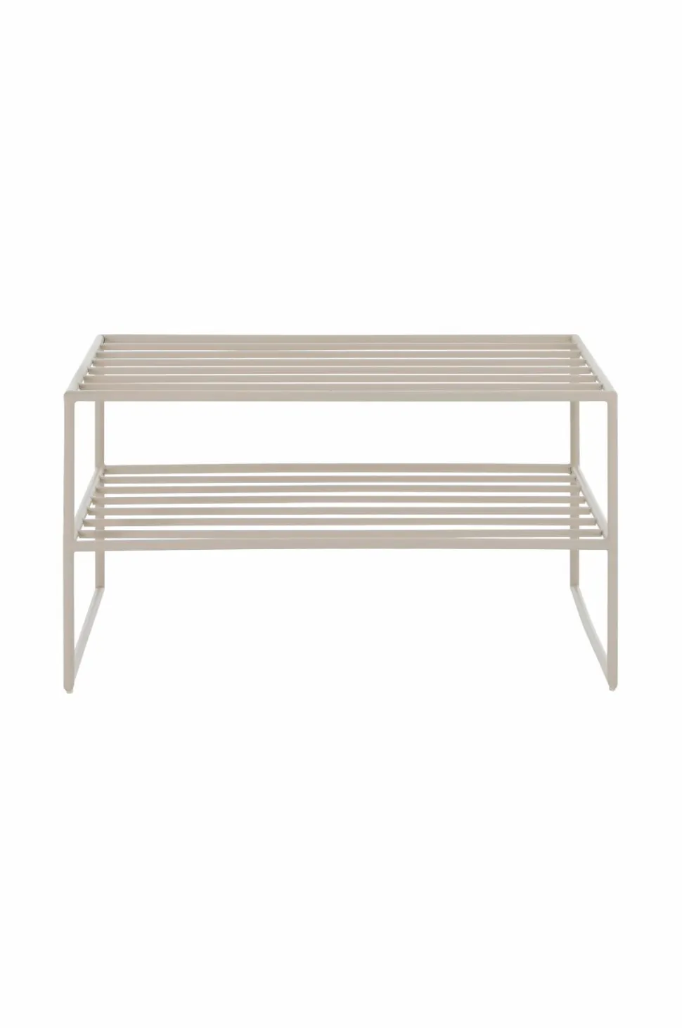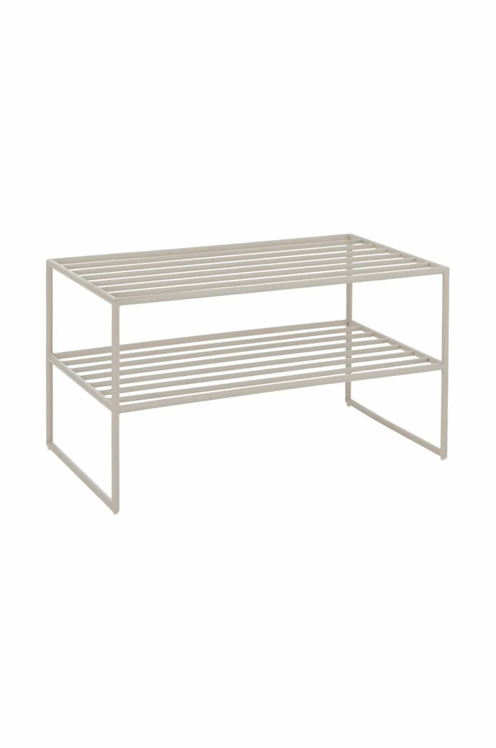 Skoreol i pulverlakeret metal med 2 hylder. Højde mellem hylderne 15 cm. Frihøjde under hylden 17 cm.