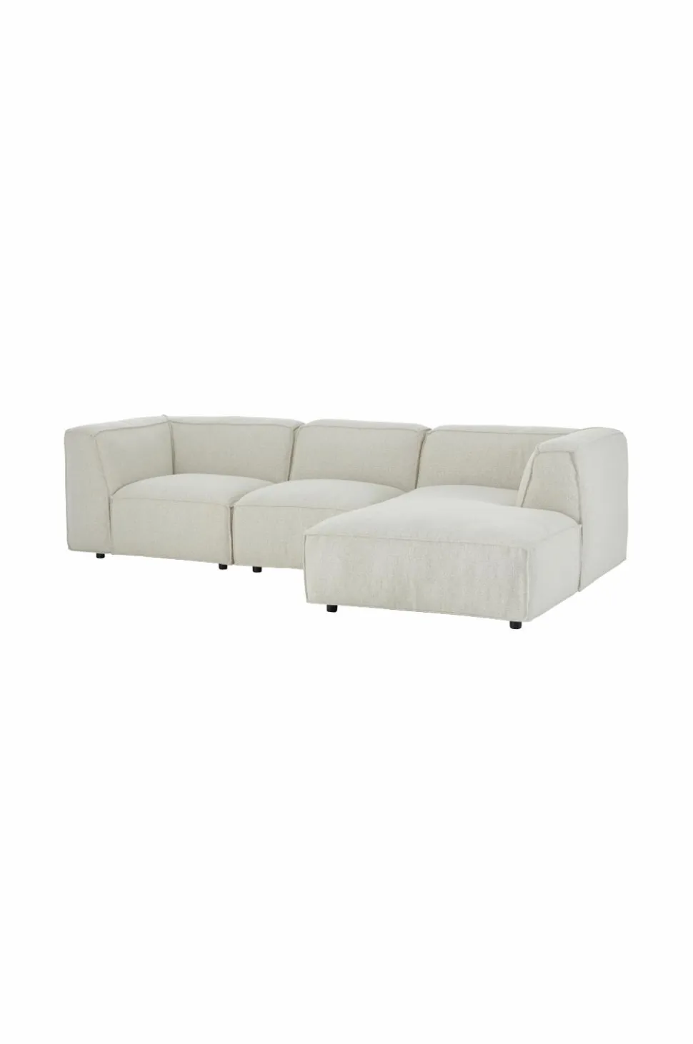 3-pers. sofa med betræk i bouclé. Højrevendt chaiselong (kan ikke venstremonteres).