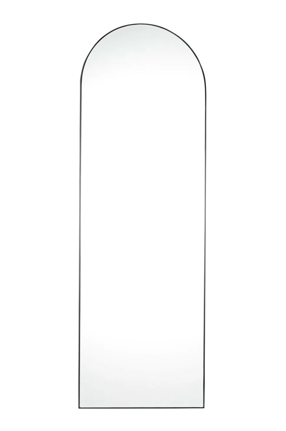 Hvælvet spejl som kan stilles på gulvet eller hænges op på væggen. Ramme af pulverlakeret metal i sandet finish med let struktur. MDF-plade på bagsiden med to nøglehulsbeslag til vægophængning. Bredde 50 cm, højde 150 cm, dybde 2 cm.
