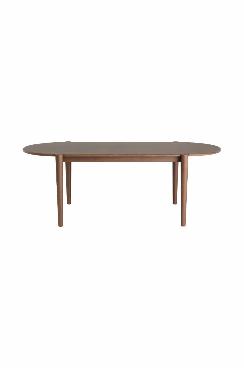 • Ovalt spisebord i massiv, bejdset fyrretræ