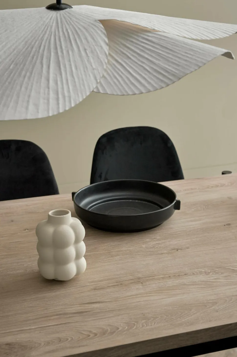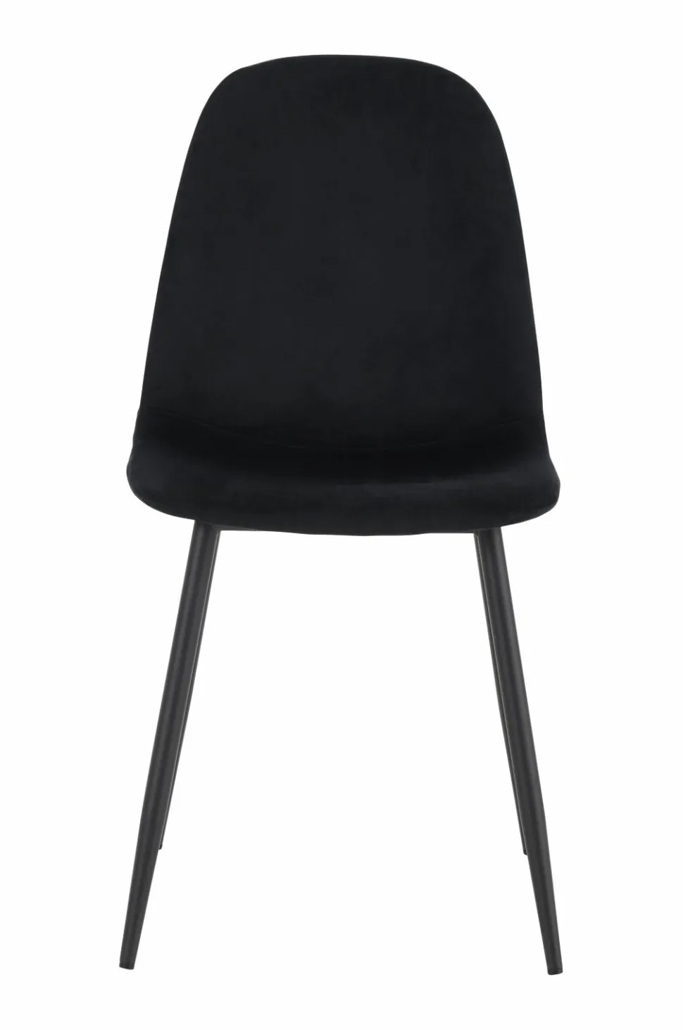 • Spisegruppe med et sæt bestående af et bord og seks stole. Bordet har pulverlakerede metalben og en plade i folieret MDF. Stole med pulverlakerede metalben. Sæde med fløjlspolstring og skumfyld.