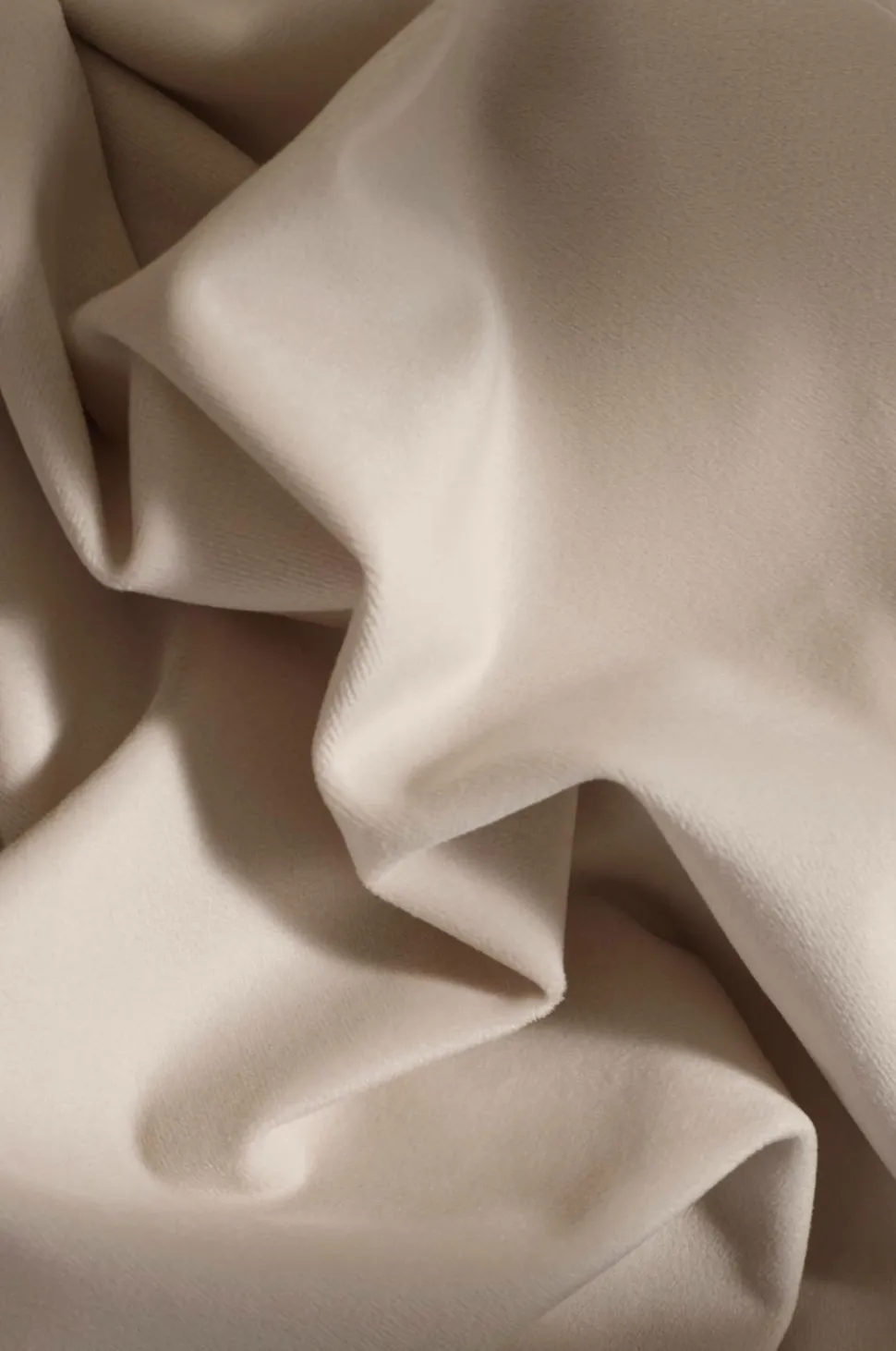 Stofprøve af DEMI, et smukt fløjlsstof, der skinner i lyset, som kun fløjl kan. DEMI-stoffet er fremstillet af genanvendt polyester. Du kan finde ud af mere om gardinet ved at søge efter varenummer: 2162062 (skriv i søgefeltet).