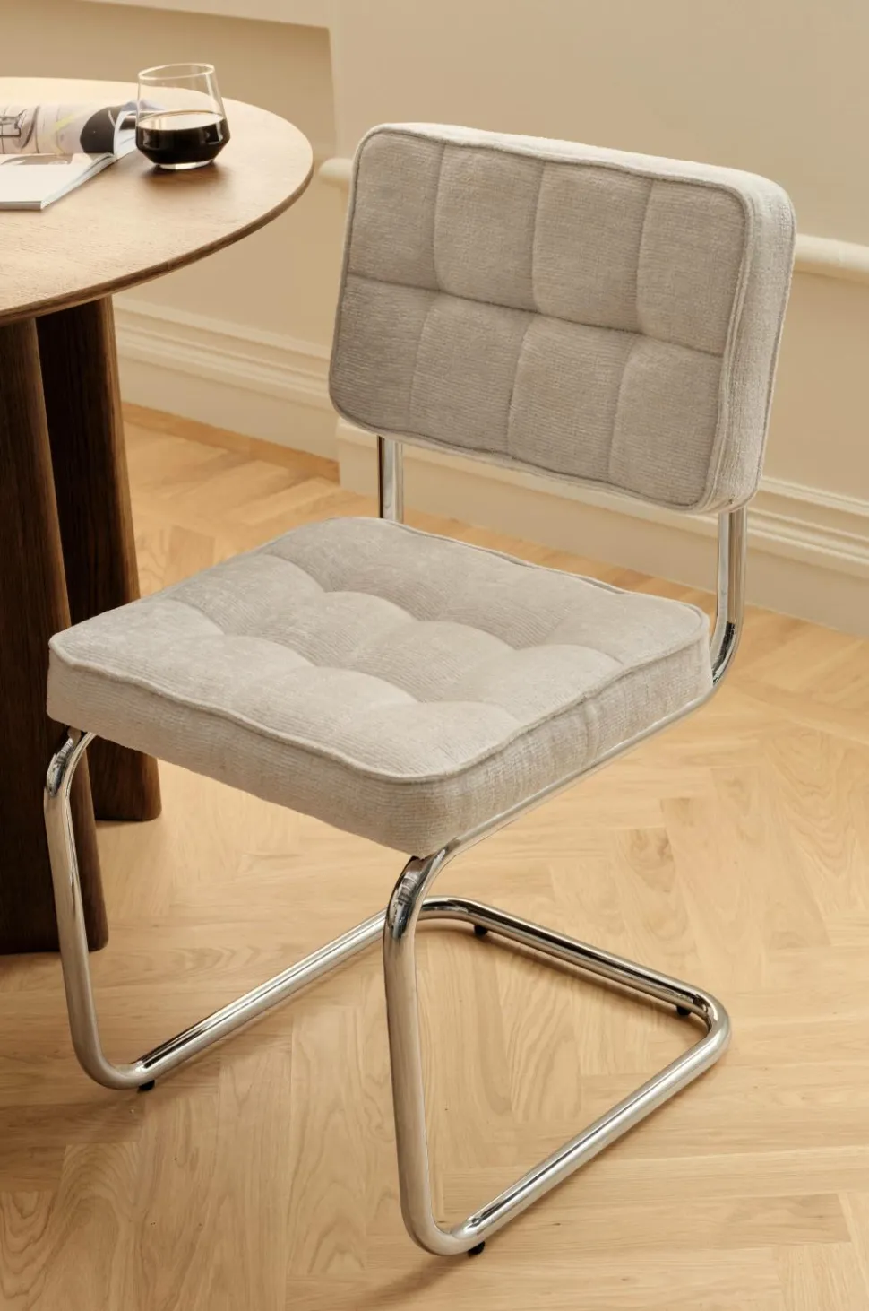 • Stol med skelet og polstring i chenille