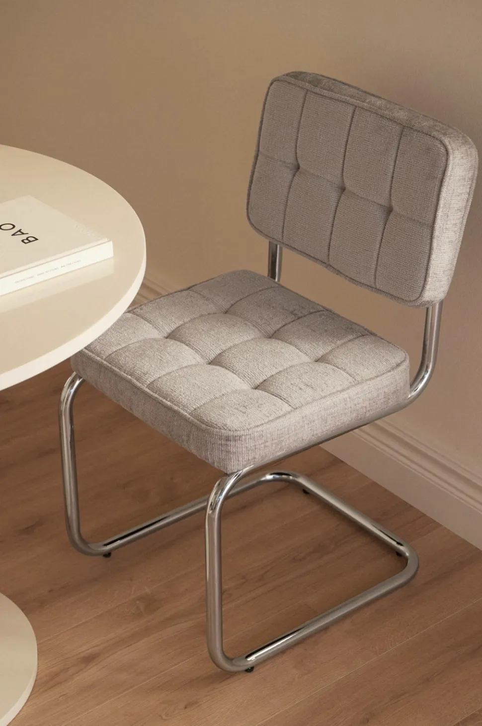 • Stol med skelet og polstring i chenille