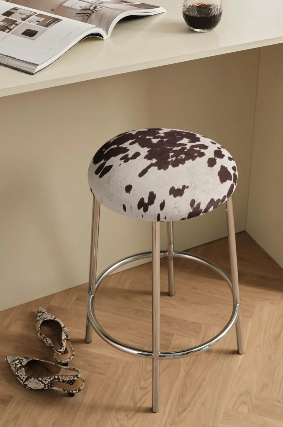 • Rund taburet med polstring i fløjl