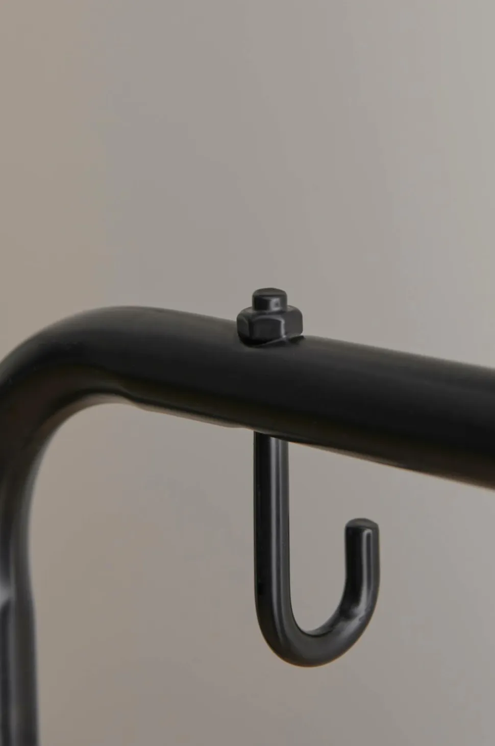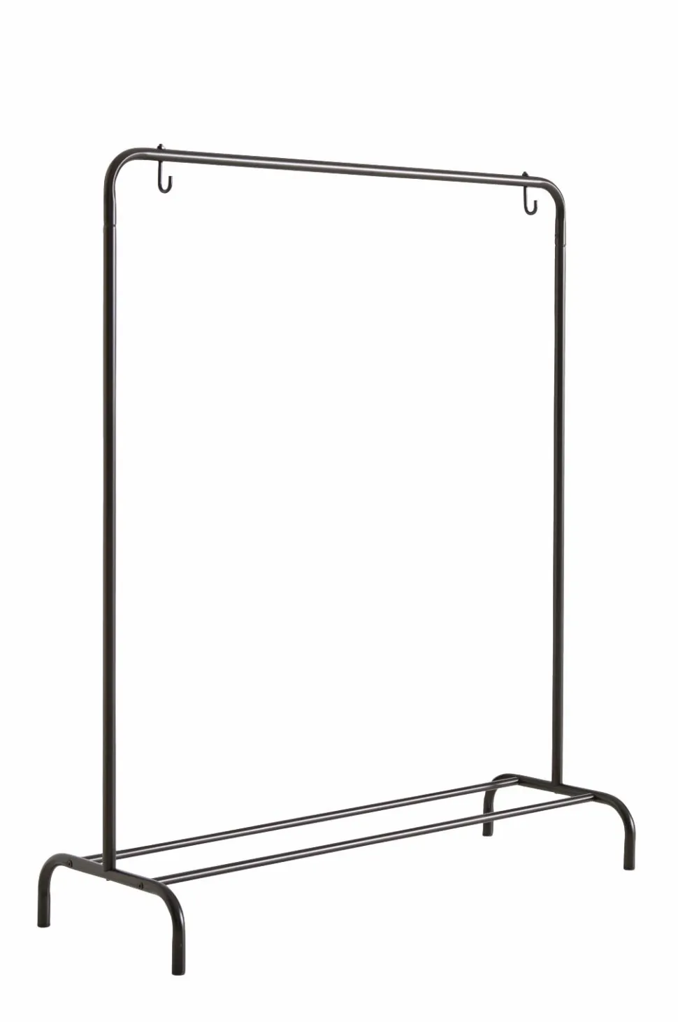 Tøjstativ af metal med 2 knager. Højde 131 cm. Bredde 110 cm. Dybde 40 cm. Lev. usamlet. Maks. belastning 8 kg.