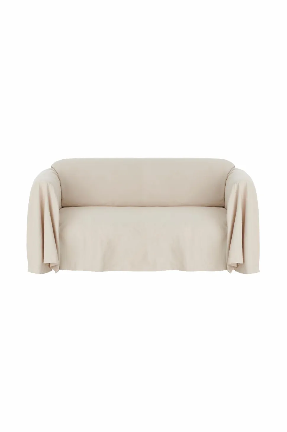 Stofbetræk i kraftig, blødvasket kvalitet. Et helt stykke stof, der draperes over sofaen. Størrelse 350×260 cm.
