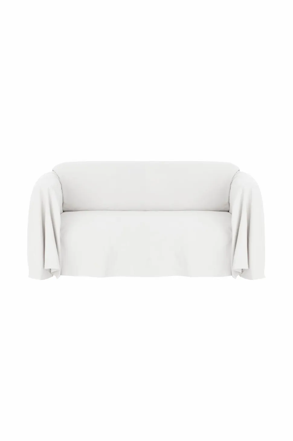 Stofbetræk i kraftig, blødvasket kvalitet. Et helt stykke stof, der draperes over sofaen. Størrelse 350×260 cm.