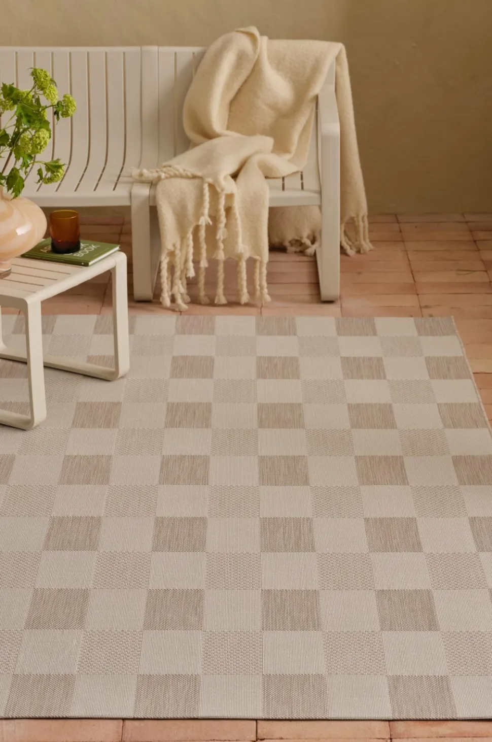 • Holdbar, glatvævet Udendørs tæppe i genanvendt materiale
