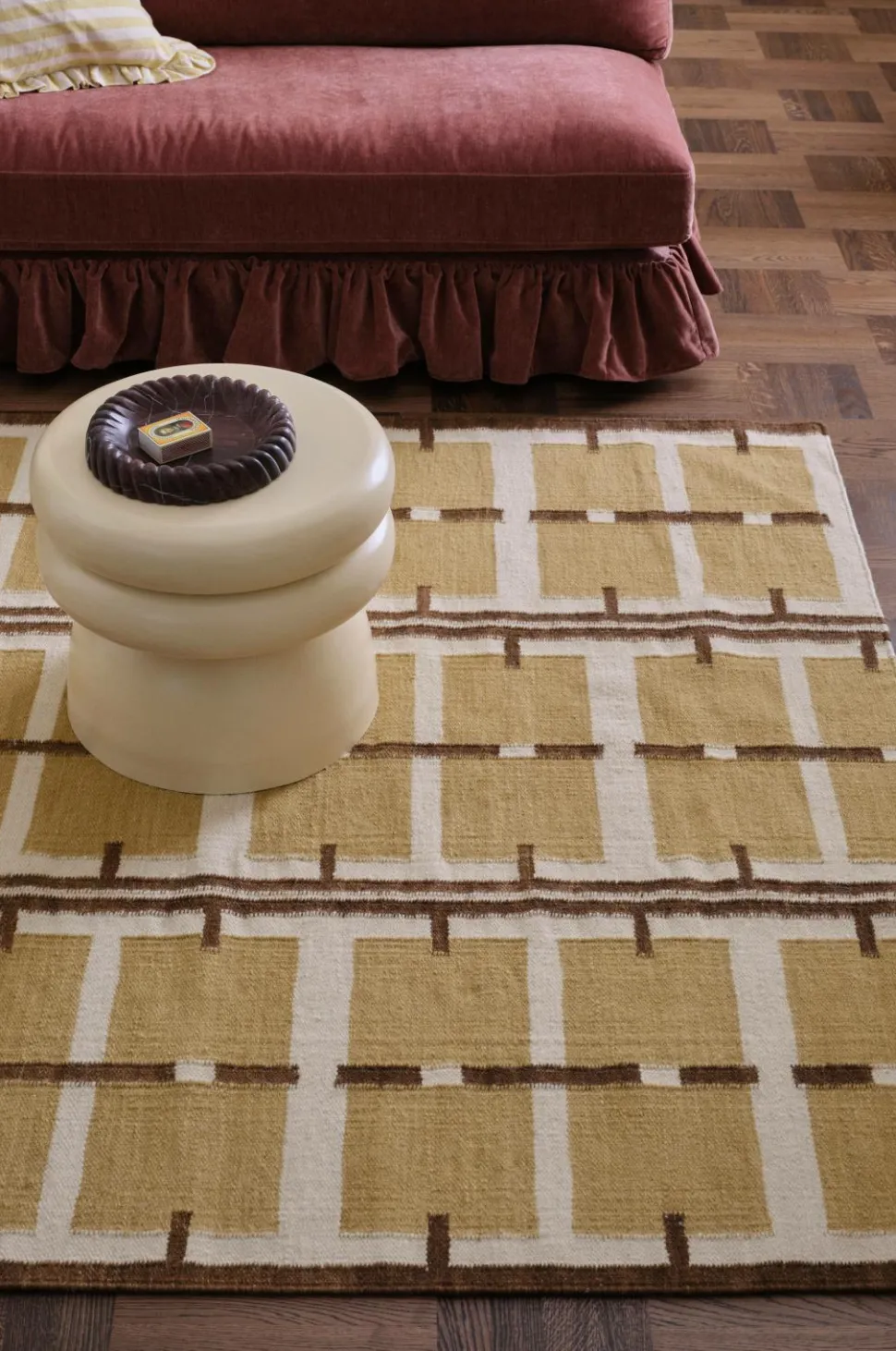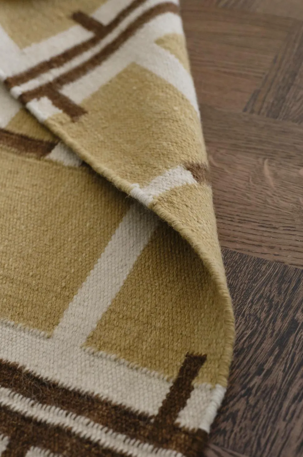 • Håndvævet, glat uldgulvtæppe