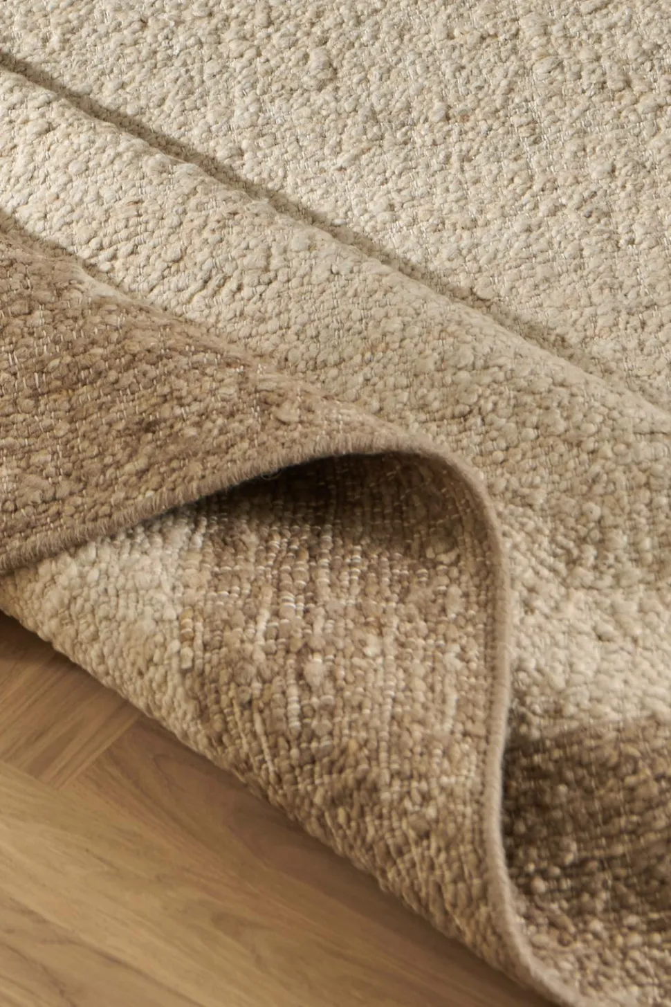 • Håndvævet uldgulvtæppe i håndspundet garn