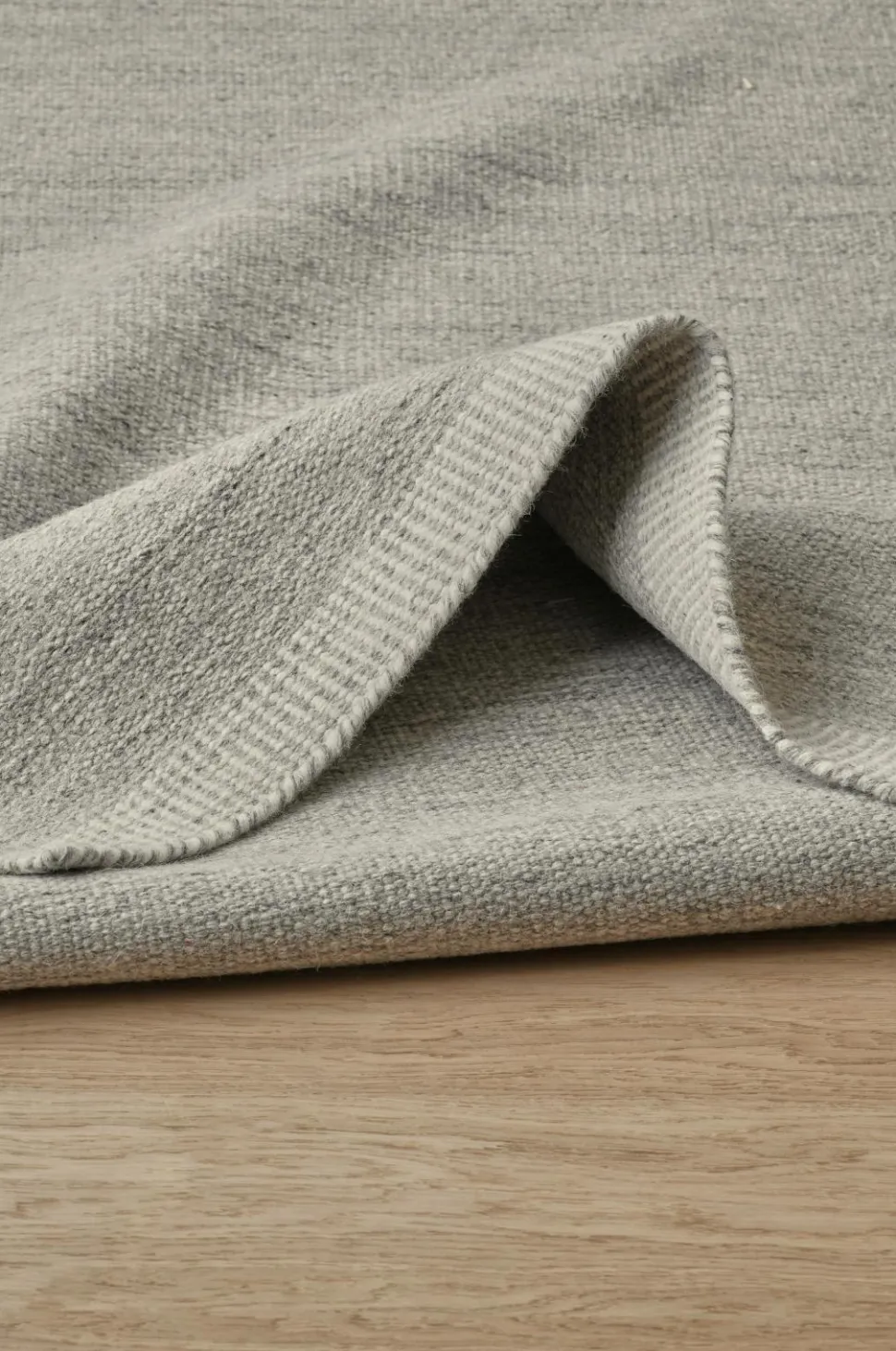 Håndvævet uldtæppe i meleret look. Stribet kant i enderne.