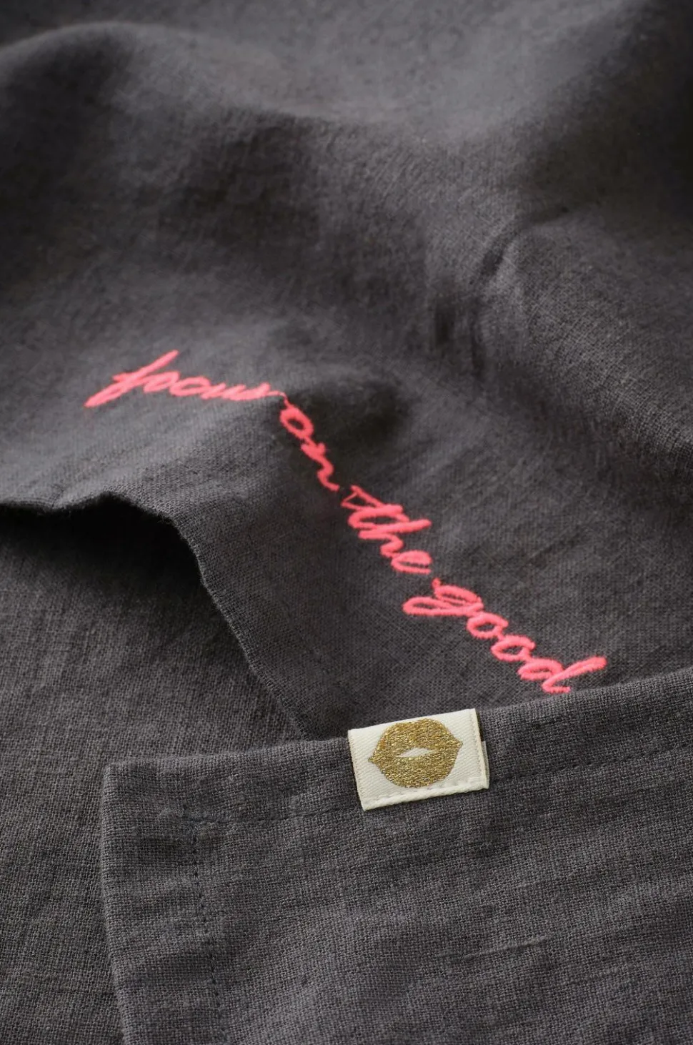 Elly er en unik kollektion med gennemtænkte og gennemarbejdede detaljer, hvor du finder sengelinned, gardiner, køkkentekstiler og hyggeartikler. Kollektionen giver dig mulighed for at skabe dit eget personlige miks, hvor du nemt kan kombinere alle delene – ensfarvede, ternede, stribede og mønstrede. Kvaliteten er en blanding af genanvendt hør og bomuld.