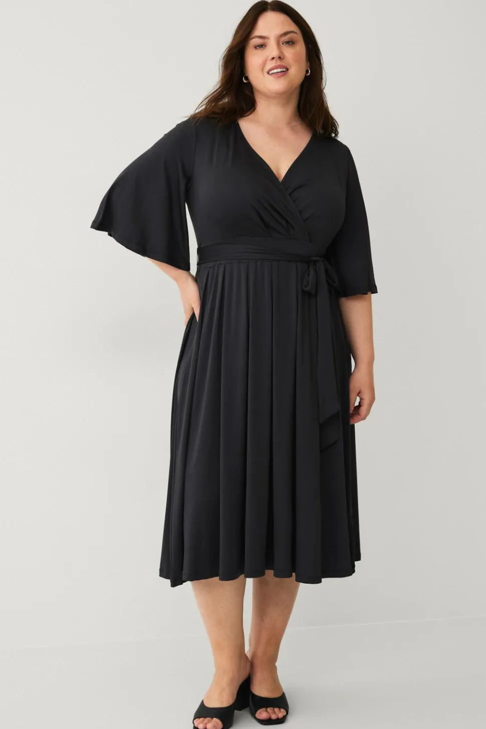 • Kjole med halvlange trompetærmer