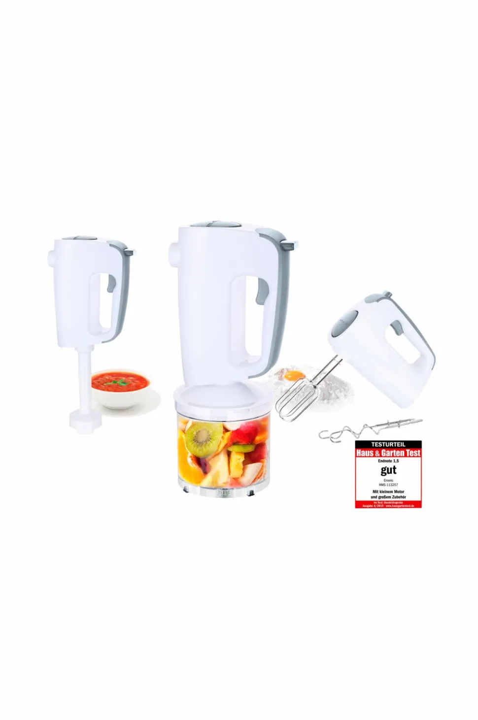 Med et praktisk elpiskeris som basis er det muligt at piske, blande og hakke. En traditionel elpisker, en stavblender og en skål til at hakke i giver stor valgfrihed i ét og samme køkkenredskab. Med en effekt på 300 watt får du et hurtigt resultat, når du pisker, blander eller hakker.