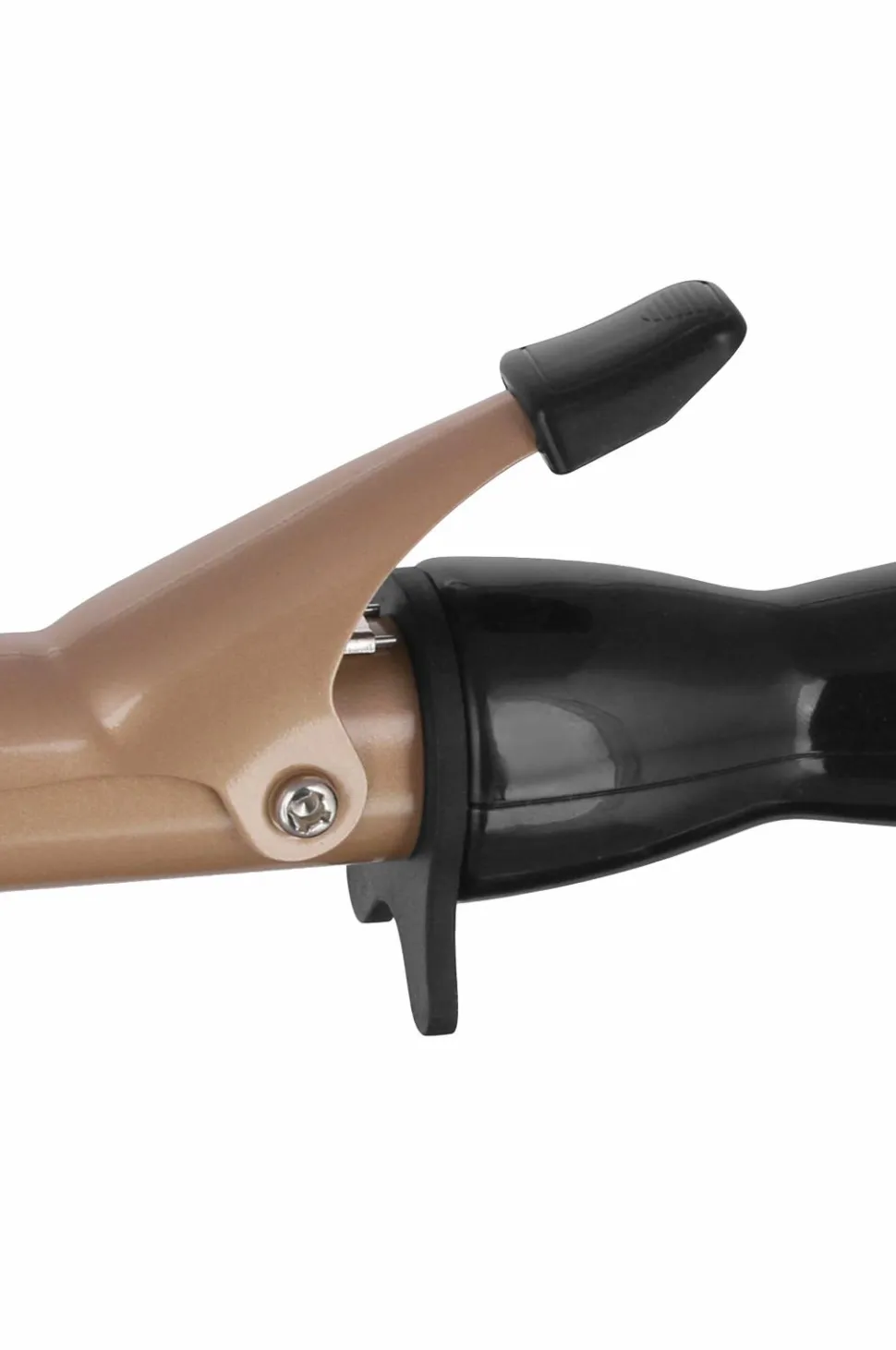 Designet er trendy i sort og guld og smart designet til at fylde lidt og være behageligt at holde i hånden. Ledningen kan drejes 360 grader, og krøllejernet har en smart ophængningsstrop. Indikatorlyset viser, om krøllejernet er tændt.