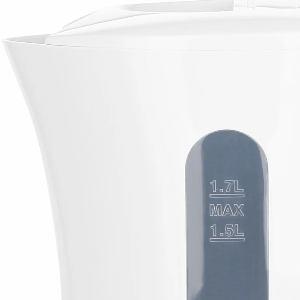Kedlens design er stilrent og moderne i hvid plast med transparente detaljer, og kapaciteten er på hele 1,7 liter. En indikator på kedlen viser tydeligt vandniveauet. Den er også praktisk ledningsfri og har tørkogningsbeskyttelse med automatisk slukning.