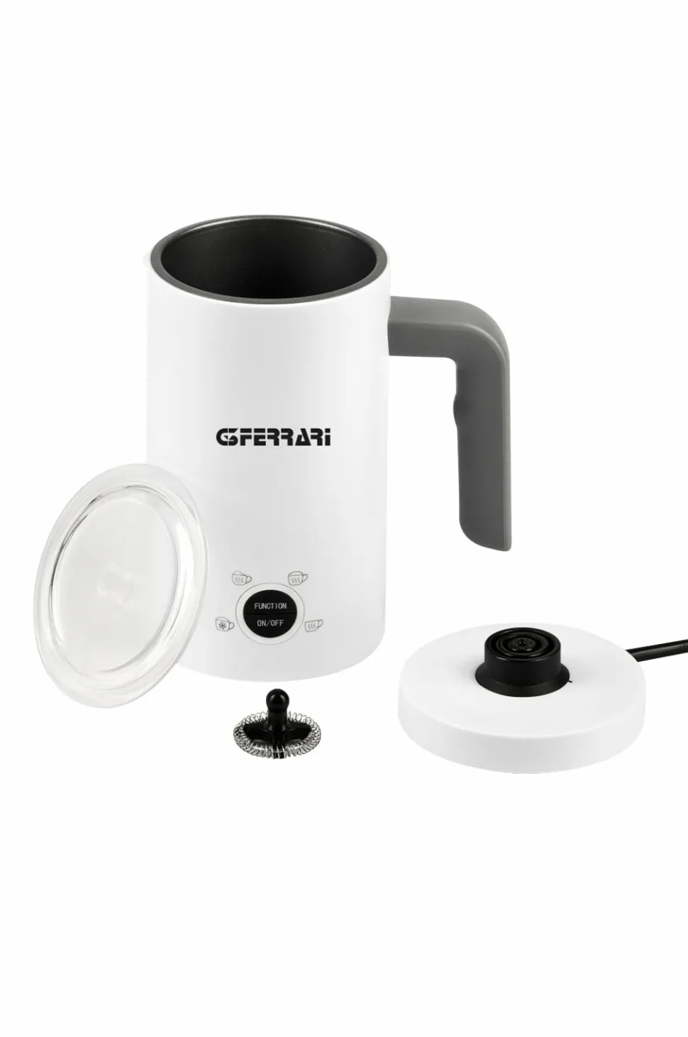 En elegant mælkeskummer montante fra det italienske g3 ferrari, som er et af tre mærker, der har ret til at bruge navnet “ferrari”. Mælkeskummeren kan piske både varm og kold mælk. Kan piske et varmt, tæt skum. Kan også bruges til kun at opvarme mælk. Kapacitet til skumning, 150 ml, og 300 ml til opvarmning. Let at rengøre, da indersiden af skummeren er non-stick. Slukker automatisk. Strømforsyning; 230v, 500w