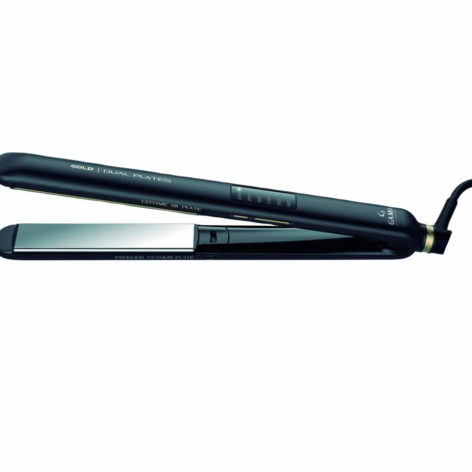 – Keramisk og Fluid Gold-beklædt plade til mjukt og genfuktet hår samt let og skonsam glidning