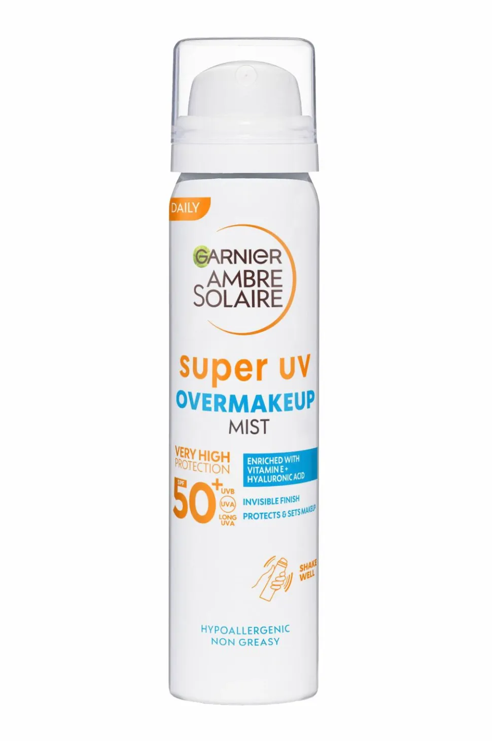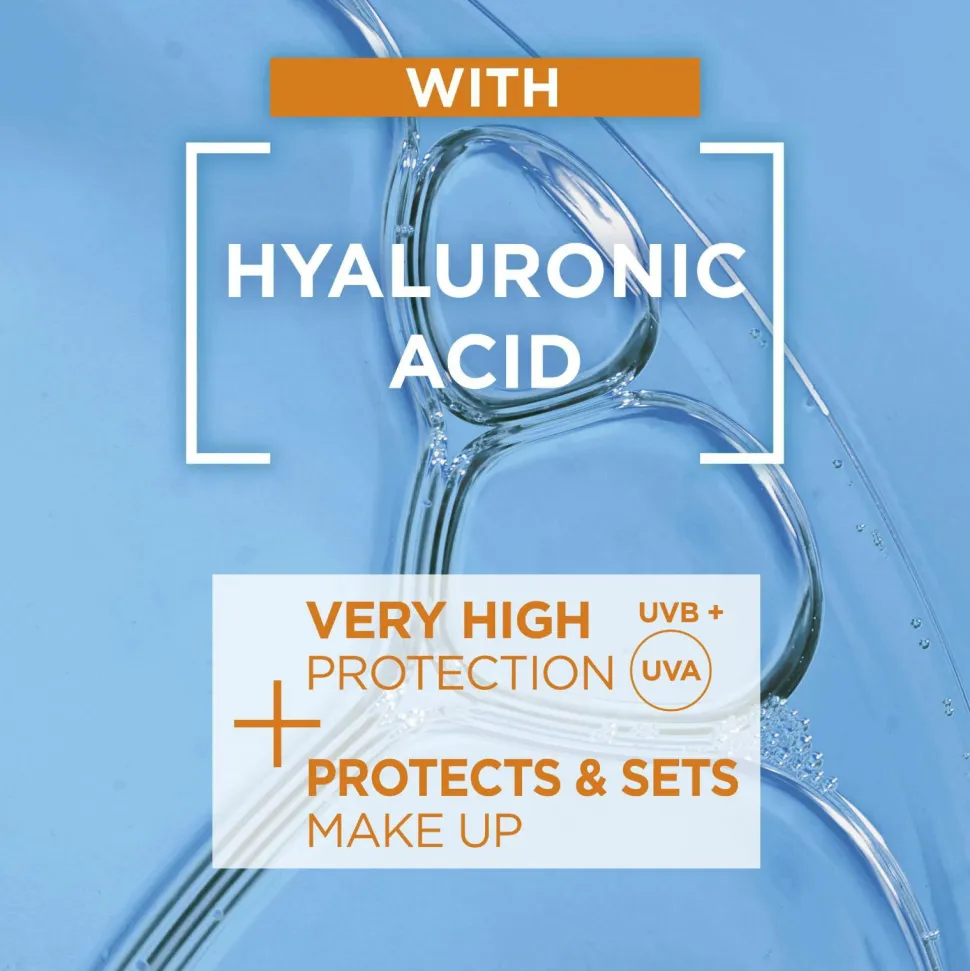 Beskyt og fugt din hud med en behagelig solbeskyttelsesspray! Garnier Ambre Solaire Over Makeup Sun Protection Mist 50+ er solbeskyttelse til ansigtet beriget med fugtgivende hyaluronsyre, som er nem at bruge både under og over makeup. En allergivenlig formel udviklet til følsom hud med meget høj solbeskyttelse, der beskytter huden mod farlige UV-stråler. Nyd solens stråler sikkert med en fugtgivende solbeskyttelsesspray.