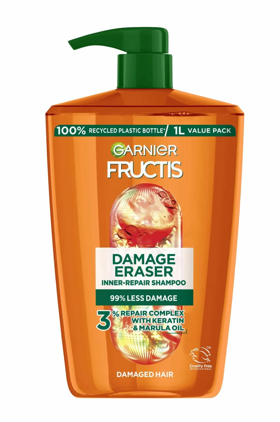 Garnier Fructis Damage Eraser shampoo er den perfekte shampoo til skadet hår. 99% færre skader* – 10X mere modstand** – 7X mindre groft hår***.