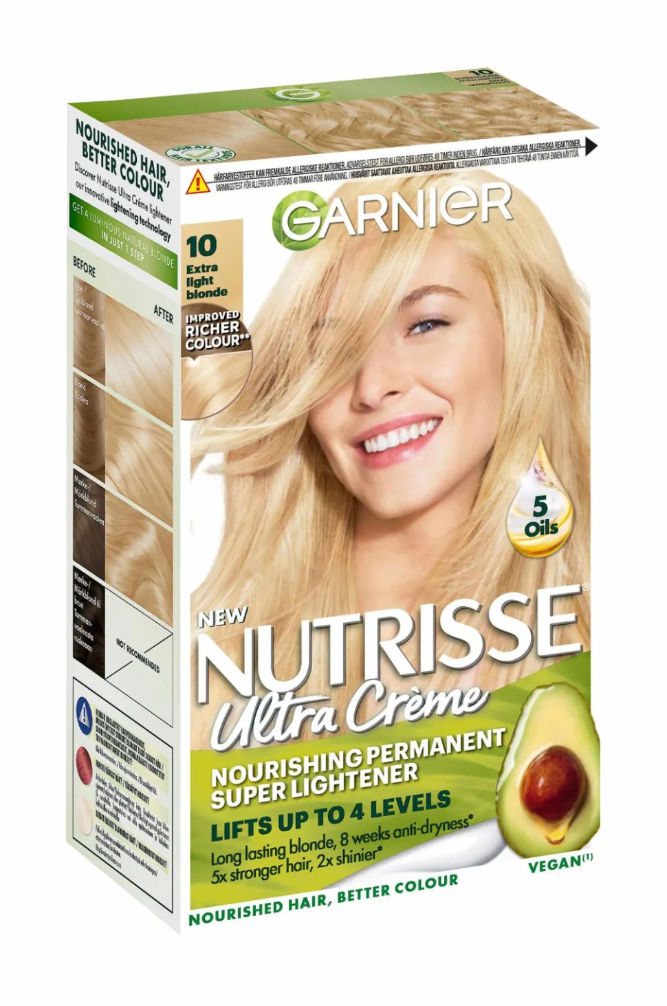 Hårfarvningsmidler kan fremkalde alvorlige allergiske reaktioner. Læs brugsanvisningen, og følg den nøje. Produktet er ikke beregnet til brug på børn under 16 år. Farv ikke håret, hvis du har udslæt i ansigtet eller følsom, irriteret og skadet hårbund, eller hvis du har reageret på hårfarvningsmidlerne tidligere.