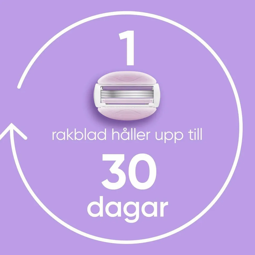 Den 3-bladede barbermaskine giver op til 30 dages glat barbering.