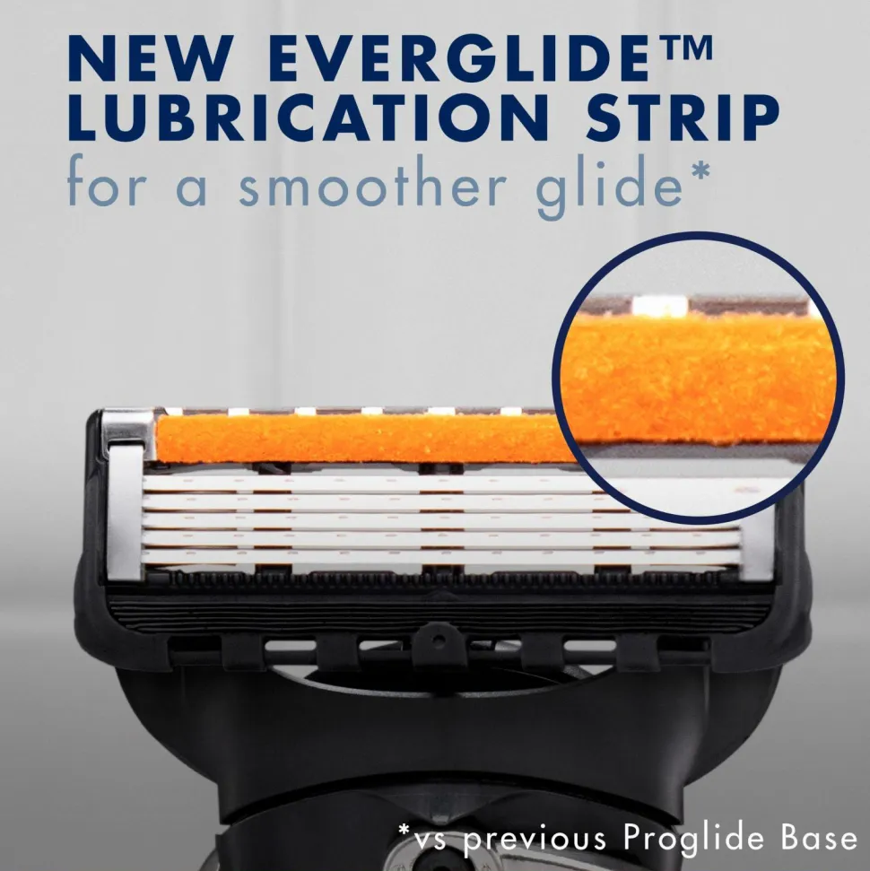 Bladene har EverGlide-Lubrication smørebånd, der giver et mere jævnt glid. Hvert blad indeholder fem UltraSharp ProBlades™, som giver en tæt barbering, der efterlader huden frisk.