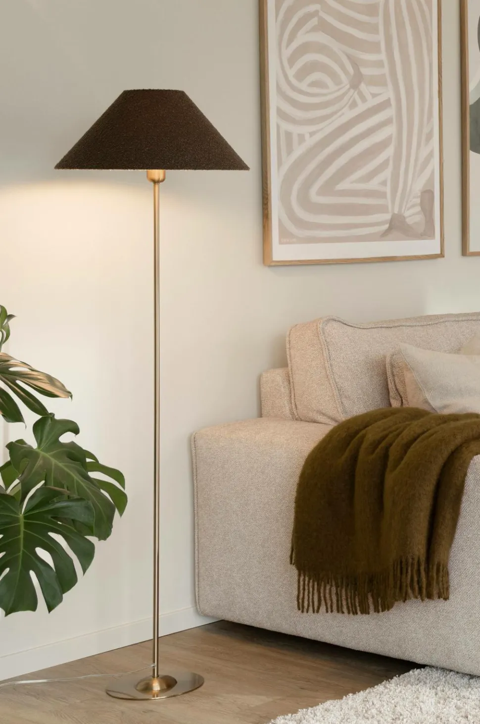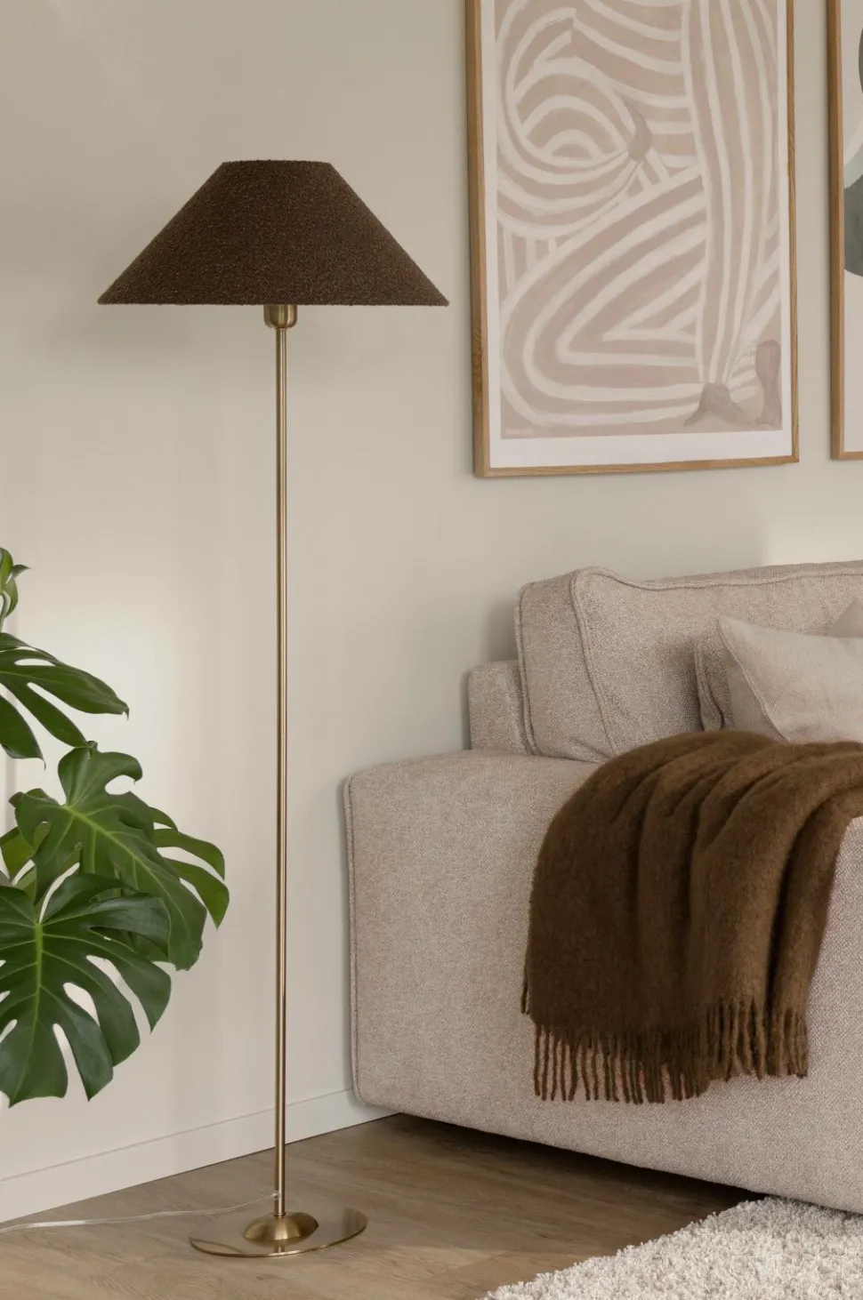 Iris’ smukke tekstilskærm er håndlavet af bouclé-stof. Skærmen har et topdæksel i matchende tekstil, og inden i skærmen er der en hvid blændingsskærm af plast. Skærmen har en e27-ringmontering, hvilket betyder, at lampeskærmen er fastgjort til en lampefod med en ring.