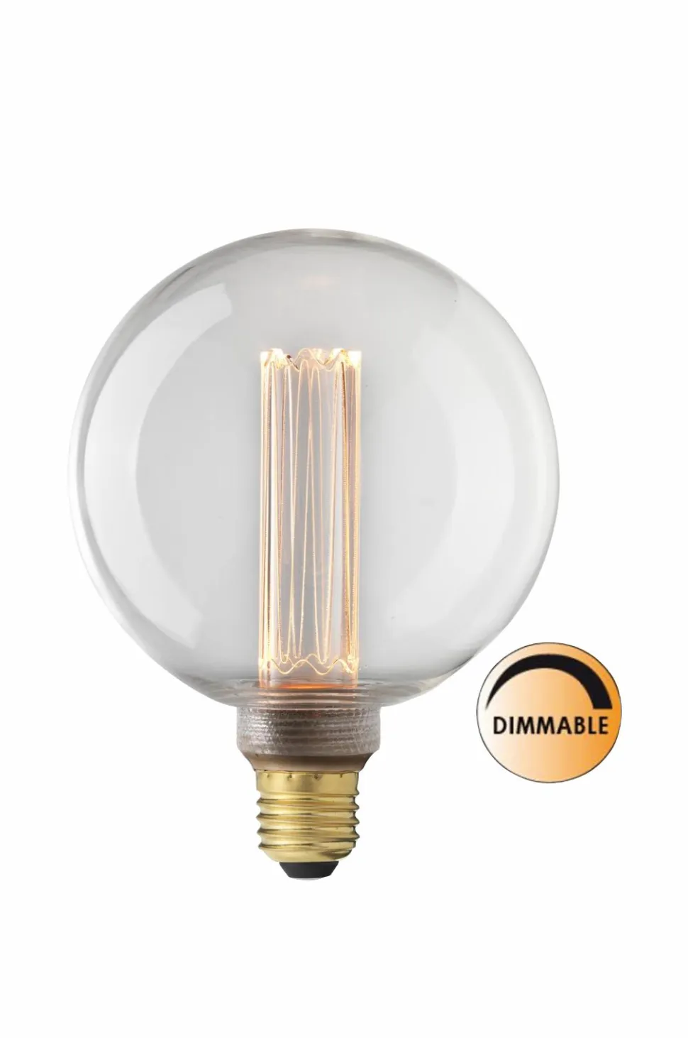 Innovativ og dekorativ pære med “Laser LED Teknologi”, som er lysdæmperkompatibel. Lyset stopper, hvor laserindskæringen er foretaget, og skaber et blidt og behageligt lys og giver illusionen af gamle dages “Edison-filament”. E27 LED Globepære 125 mm Klart glas 3,5 W (=25 W), 2000 K, 110 lm