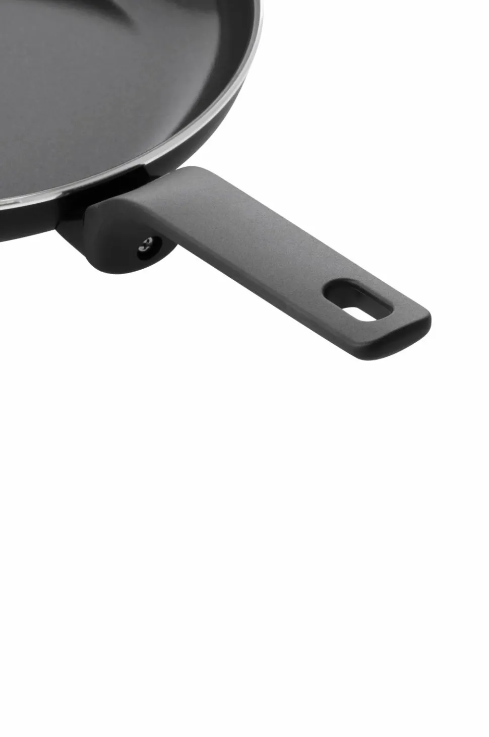 Det elegante stay-cool-håndtag giver et sikkert greb og kan nemt skrues af efter brug, så panden lettere kan genbruges.