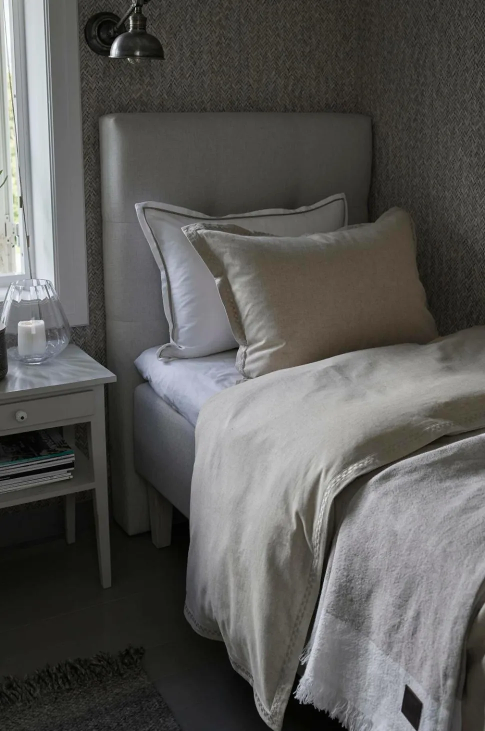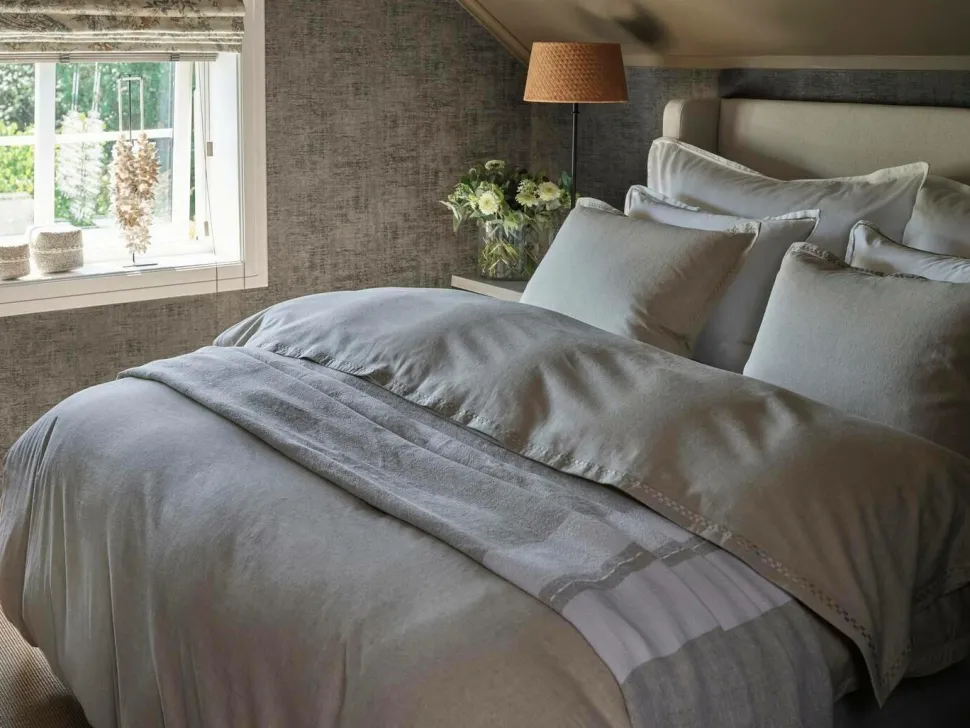 Ramsholm sengetæppe er vævet i en udsøgt hørkvalitet med tyngde og et yndefuldt fald, der naturligt omslutter sengens dyner. Det dejlige ved hør er, at materialet har en fin struktur og en afdæmpet glans, der skaber en smuk kontrast til sengetøjet. Det giver et afslappet og hyggeligt, men samtidig elegant og eksklusivt indtryk. De diskrete kontrastsyninger, frynserne på den korte side og de beige striber i linned er udsøgte detaljer i et dejligt sengetæppe, der også kan bruges som et generøst tæppe. Sengen tager sig altid bedst ud, når den er indrettet med et sengetæppe og masser af puder. Ramsholm leveres også med matchende pudebetræk til større pyntepuder, som giver et ekstra touch. Hørfarvet med frynser på de korte sider. 100% hør. Leveres med matchende pudebetræk. Håndsyede dekorative syninger. Størrelse: 120×240 cm. Fås i flere farver. Sengetæppet er en del af Halvor Bakkens bedtime story-kollektion.