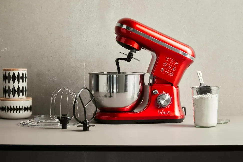 Hâws køkkenmaskine i et elegant sort design er en multifunktionel maskine med en høj ydeevne på 1200w. Produktet kan blande, piske og ælte afhængigt af, hvad du vil gøre. Ingredienserne kan blandes ved 6 forskellige hastigheder, hvilket gør denne køkkenmaskine meget effektiv, fordi den kan bearbejde de ønskede ingredienser på kort tid. Foodprocessoren er designet til at være ekstra brugervenlig, fordi hastigheden kan indstilles individuelt. Desuden behøver skålen ikke at blive taget af, mens den kører, fordi plastlåget er designet med et hul. Det gør det nemt at tilsætte ekstra ingredienser, mens produktet kører. Fås i sort, rød og hvid. Vælg din favorit!