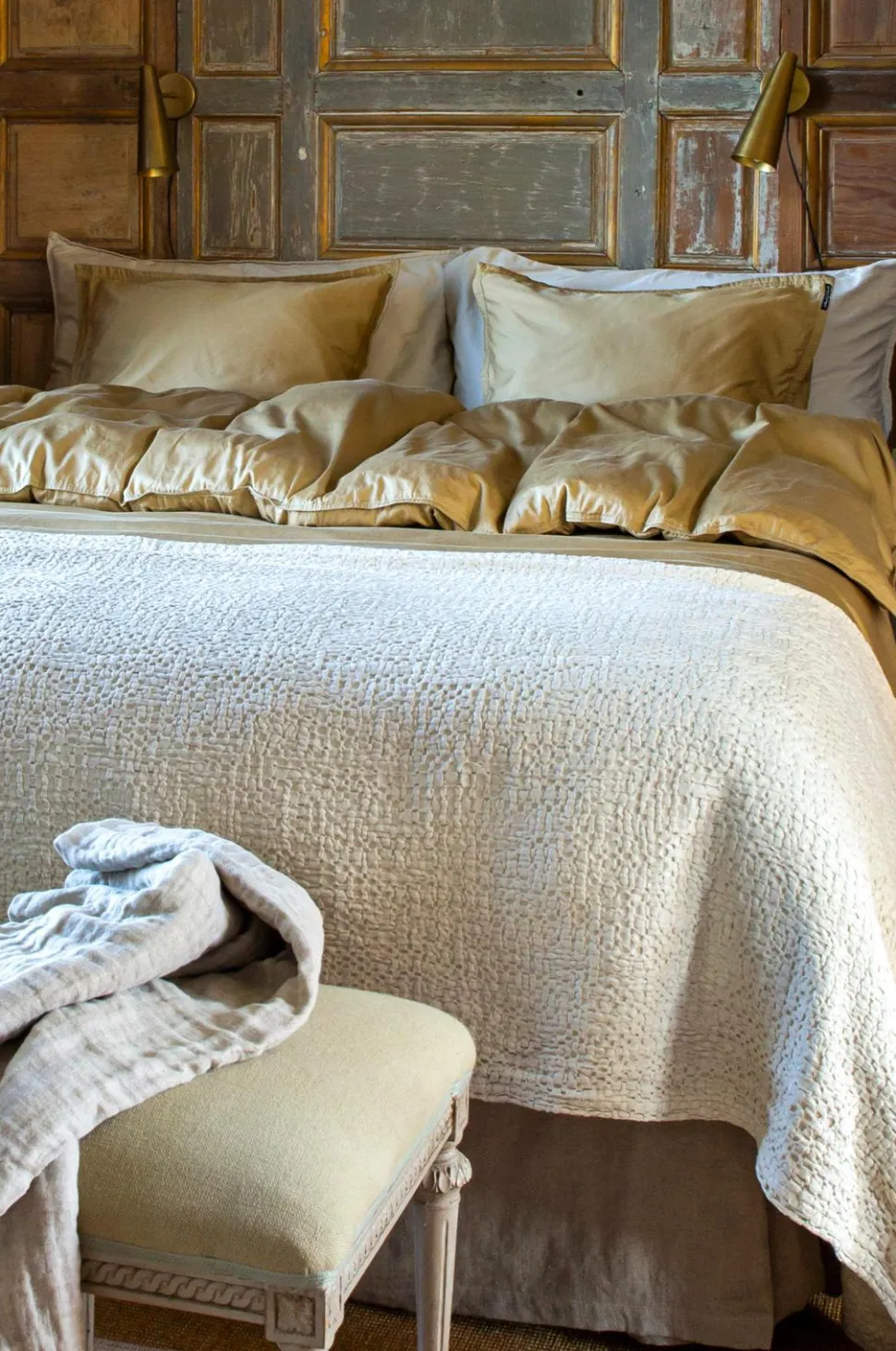 Dani er et sengetæppe i 100% bomuld vævet i et fint strukturmønster. Sengetæppet er stenvasket efter syning, hvilket giver en blød og afslappet følelse. Certificeret i henhold til OekoTex Standard 100. Maskinvask 40°C. Undgå direkte sollys, da farven kan blive afbleget.