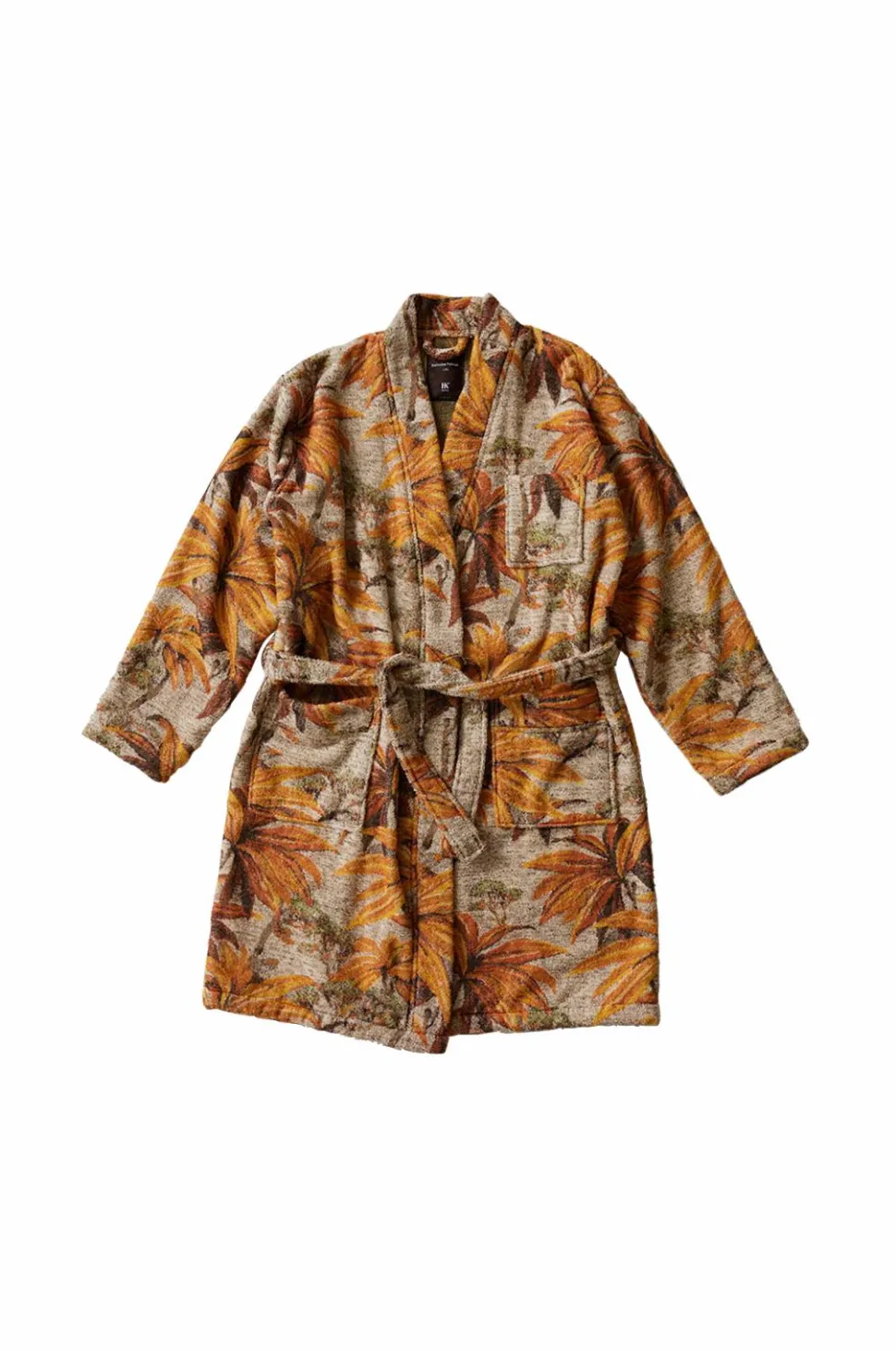 Inspireret af 1970’ernes vintage housecoats er Palmae-badekåben med sit tropiske twist den perfekte ledsager på vej ned til morgenmaden. Fremstillet i 100 % jacquardvævet bomuldsfrotté, som du aldrig vil have lyst til at tage af. Fås i to størrelser: S/M og L/Xl.