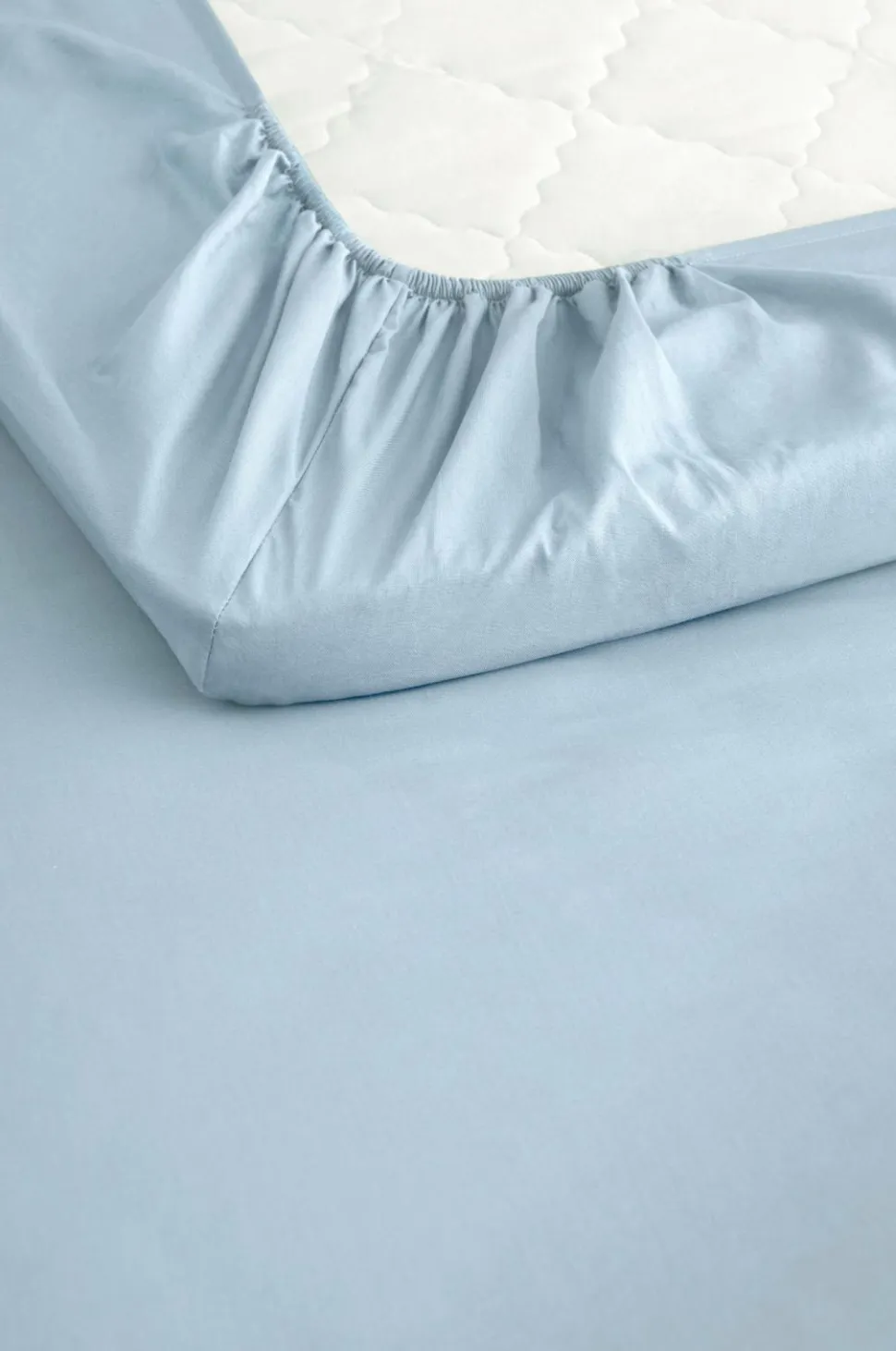 Faconsyet lagen i blød bomuld. Trådtæthed 144 TC. Elastikbånd i hjørnerne. Hjørneelastik 25 cm. Passer til madrasser op til 10 cm.