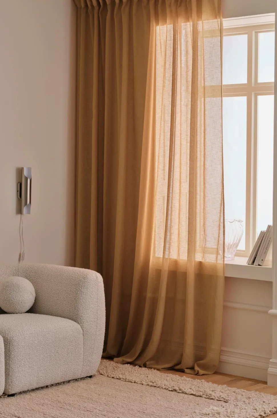 Ekstra bredt multibåndsgardin i løst vævet hørlook i blød, genindvundet polyester. Multibåndet gør, at du enten kan hænge gardinet direkte på en gardinstang gennem de skjulte stropper eller anvende ringe, nålekroge eller fingerkroge. Snoren i rynkebåndet gør, at du let kan skabe ensartede, flotte læg. Sælges enkeltvis