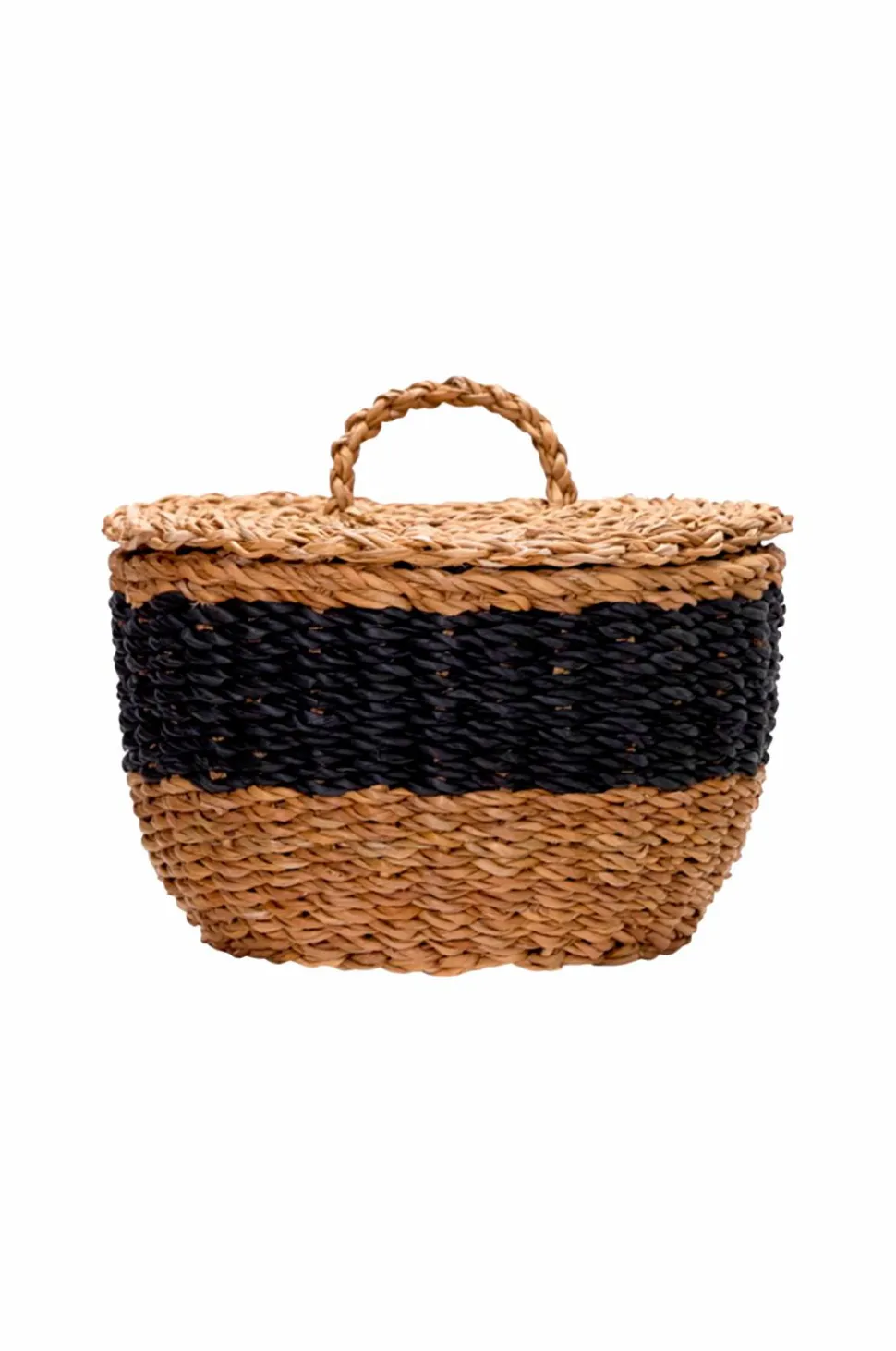 Tilføj naturlig karakter til dit hjem med dette sæt af tre håndlavede kurve af havgræs, hver med et tilpasset låg og slående sorte mønstre. De er perfekte til opbevaring af alt fra minder til håndværk og kombinerer iøjnefaldende grafik og bohemecharme for en alsidig stil. Løft stemningen i ethvert rum ved at udstille dem sammen eller hver for sig.