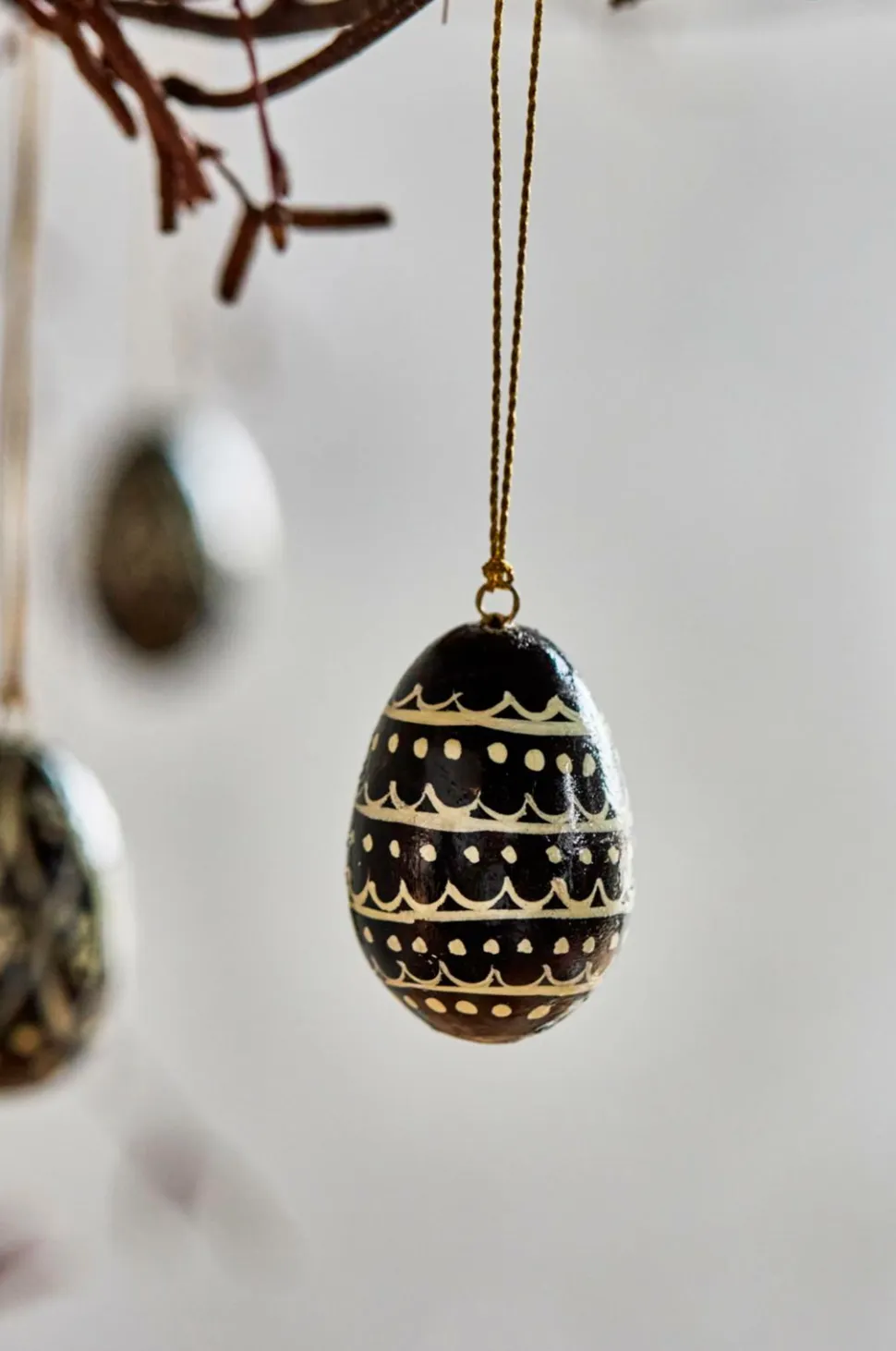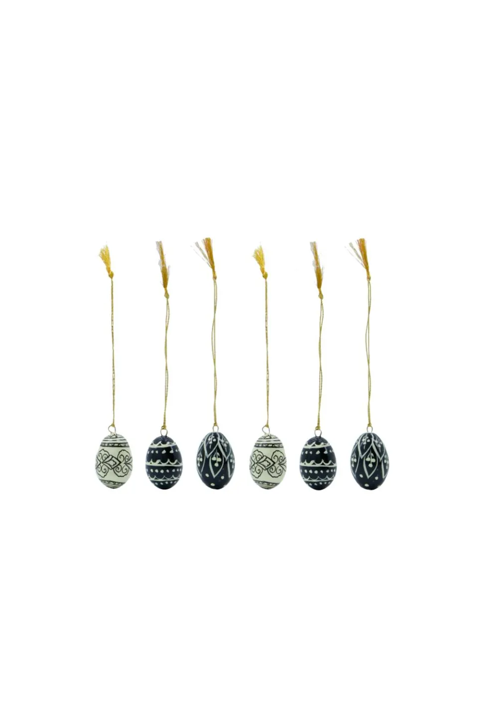 Tilføj et strejf af elegance til din festlige indretning med dette sæt med seks håndlavede ornamenter. Disse håndmalede dekorative æg giver varme og personlighed til din bolig og pynter ubesværet på enhver gren eller ethvert bord med deres charme. Sæt med seks ornamenter. Bring varme og charme til din boligindretning med disse stilfulde ornamenter.