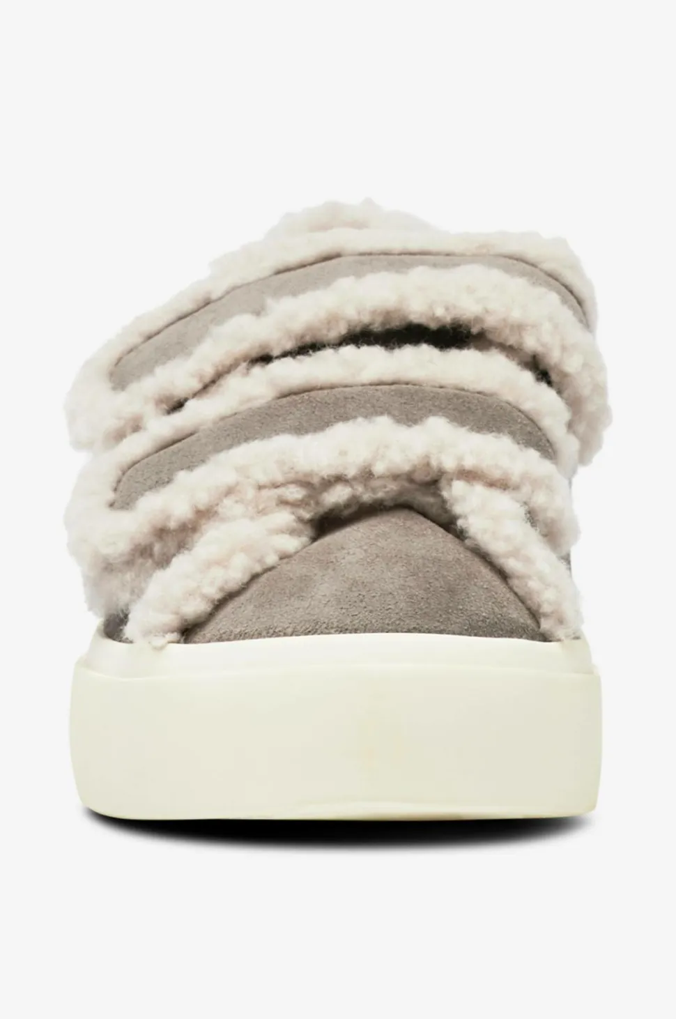 • Øvredel i ruskind og fåreuld med velcrolukning
